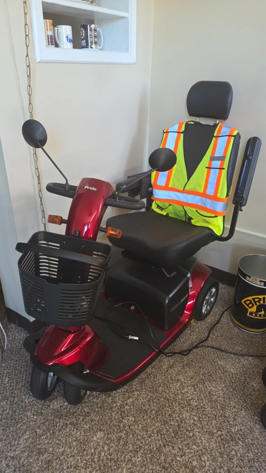 Selling a Pride mobility scooter. It's in good condition and ready to go! includes a high back chair, extra mirror, and saddle bags. It comes with a basket for your convenience. Barely used, mom's health took a turn for the worse almost immediately after purchasing so hasn't had barely used it.