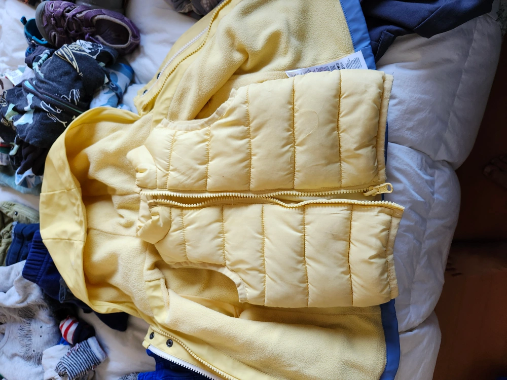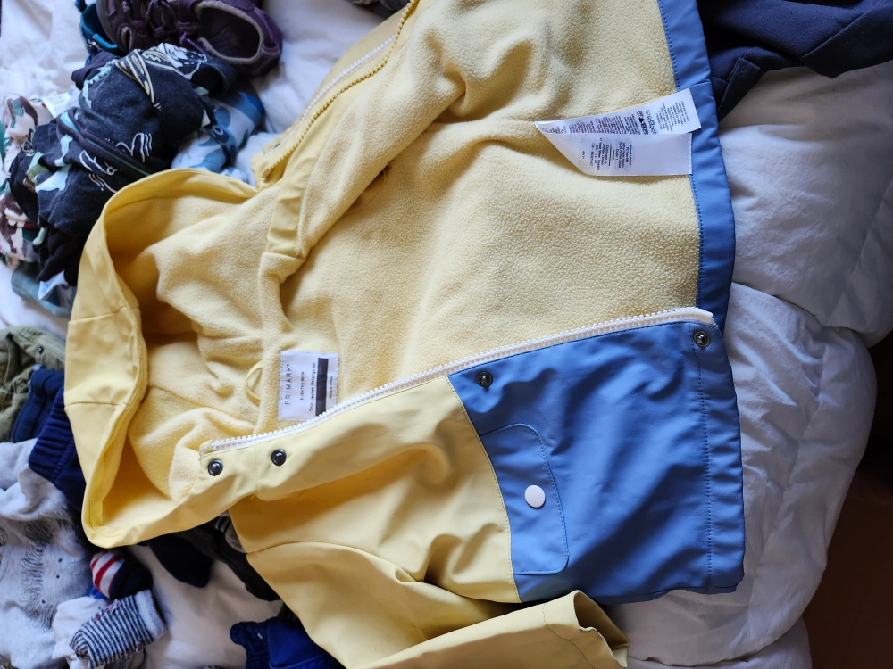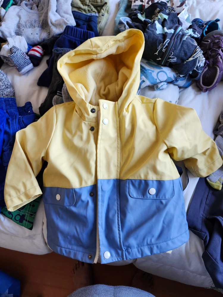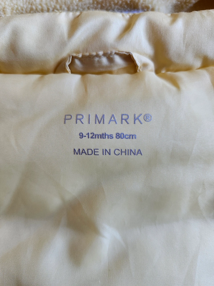 A cute baby jacket from Primark! It's size 9-12 months or 80cm. The jacket is yellow and blue, perfect for keeping your little one warm and stylish.