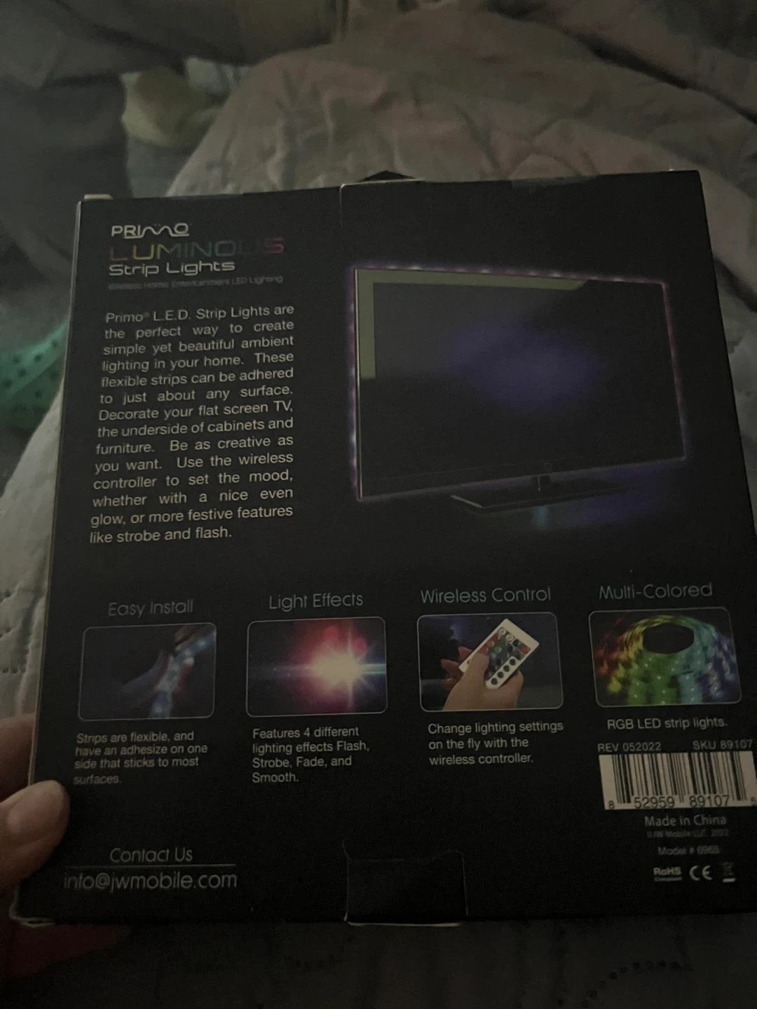 Add some ambiance to your space with these Primo Luminous LED Strip Lights! They're 16 ft long and come with a wireless controller to change the lighting settings. Easy to install and feature multiple colours and light effects like strobe, fade, and smooth. Perfect for decorating cabinets, furniture, or your TV!