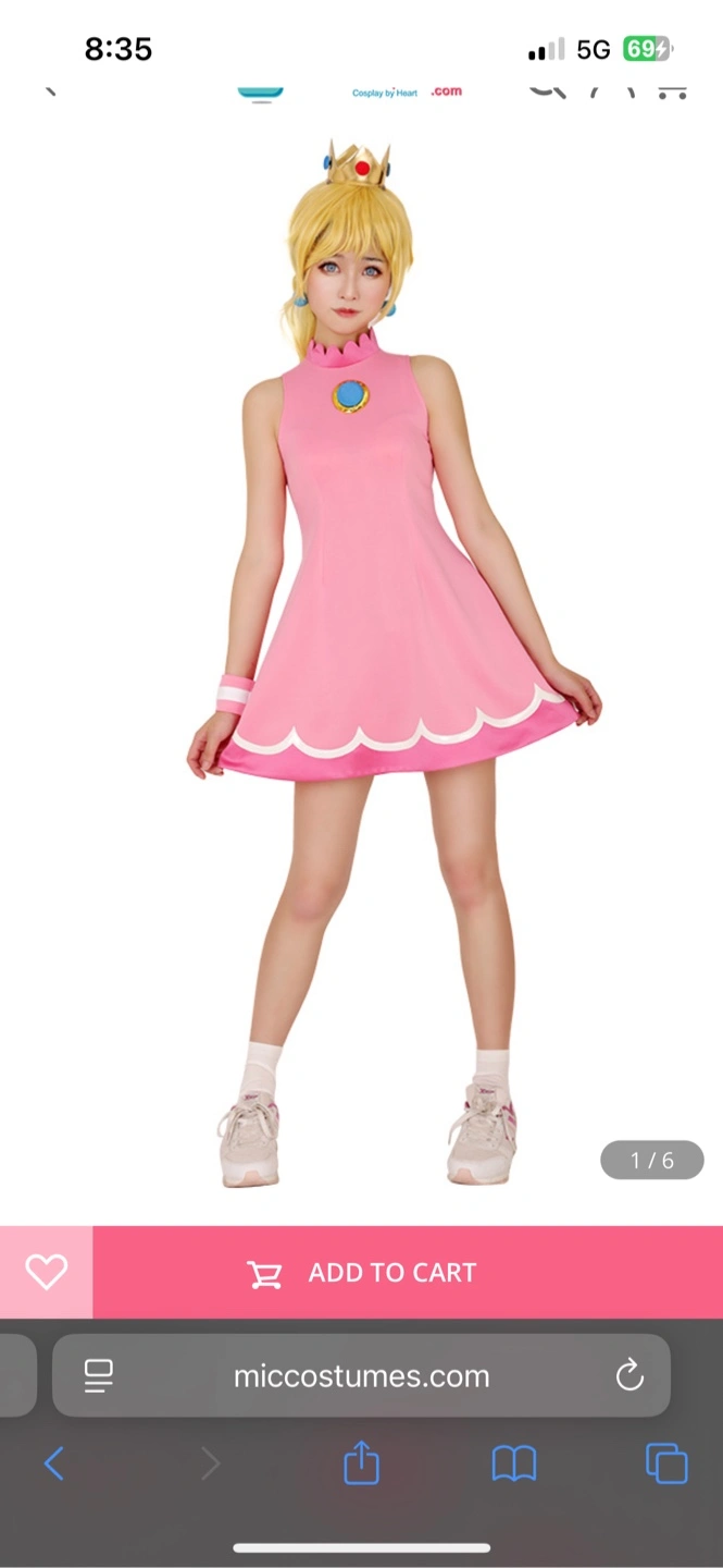 Selling a Tennis Princess Peach cosplay dress and wig perfect for conventions or themed parties! The dress is a perfect replication of hers from any sports Mario games. Only worn once to hand out candy during Halloween