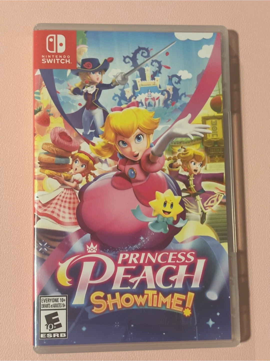Selling Princess Peach: Showtime! for the Nintendo Switch. It's rated E10+ so it's suitable for everyone aged 10 and up. Get ready for some fun adventures with Princess Peach!