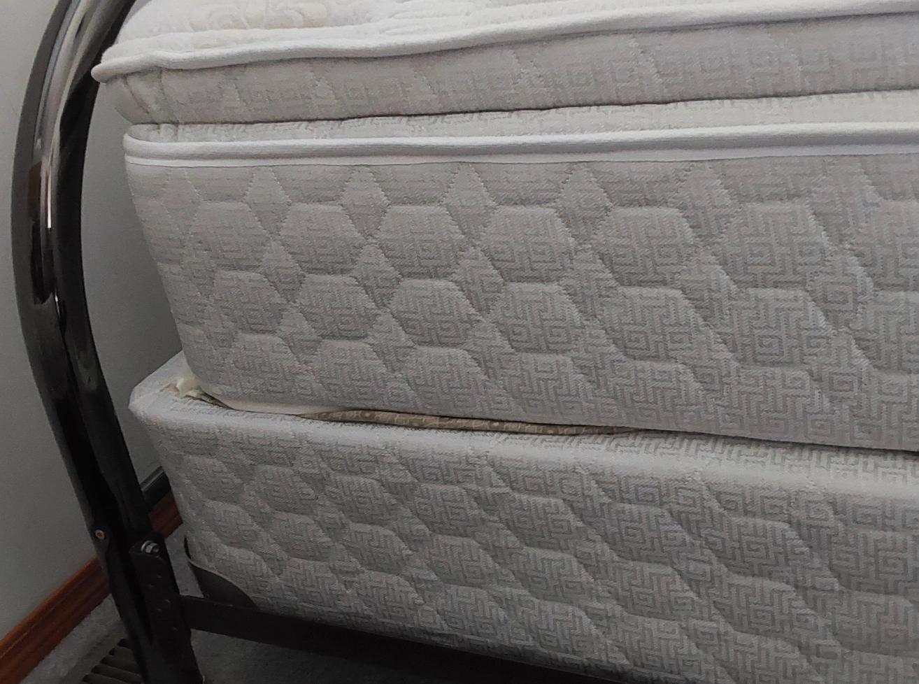 They're high quality of bed set in PRISTINE Condition. Selling a Sealy Posturepedic Symmetry II pillowtop mattress and box spring with beautiful metal firm bed frame ! it's ready for a new home. This firm mattress offers great support for a restful night's sleep. Perfect for anyone looking for a comfortable and supportive sleep surface. only few times used for a guest.