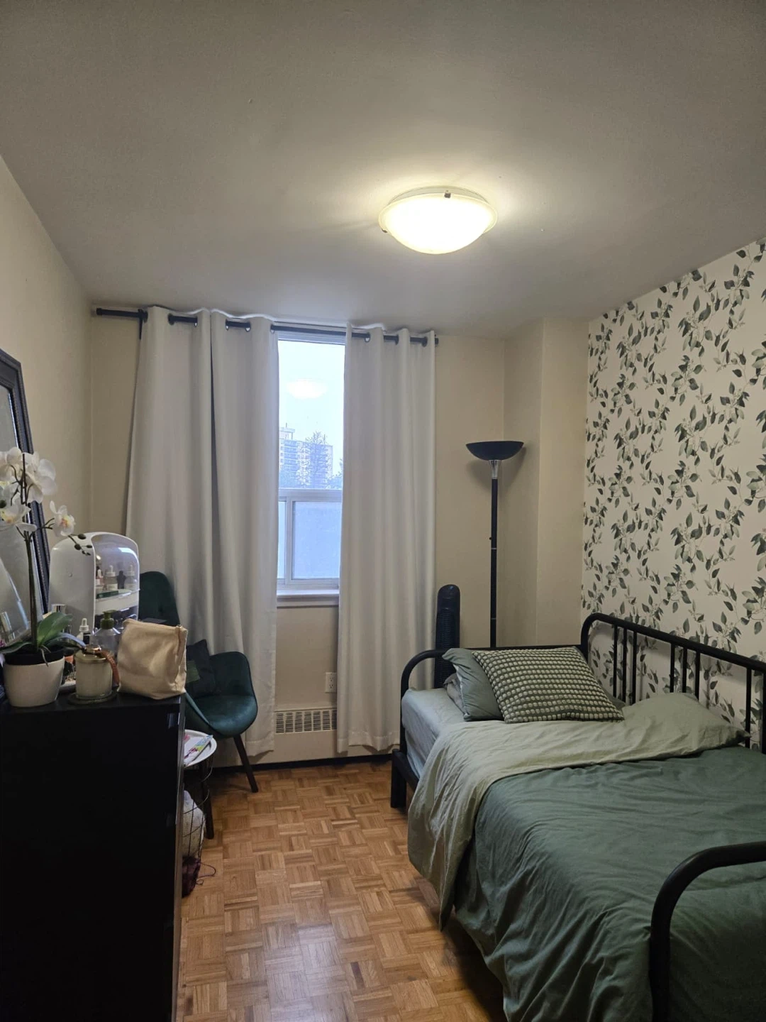 A private bedroom is available in a 2BHK apartment. • The master bedroom is occupied by a couple with their baby. • The second bedroom is available for a working professional (single occupancy only). Rent: $900 per month (including utilities). You’ll be sharing the kitchen, living area, and washroom with the family. The apartment is well-maintained, peaceful, and conveniently located near don mills Subway station 📌 Ideal for a clean, responsible, and working individual. Available from 1st Nov.