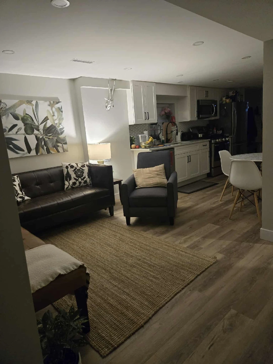 15Beautiful basement with 2 rooms and 1 washroom (only one room available). The place included tv, dishwasher, laundry and microwave. Is really close to the bus station (2 blocks) and for a few restaurants and stores near by. Is a really cozy place to stay and im looking for someone (woman preference) responsible, clean and friendly that took my room. If you want to come and see the place, send me a DM with a brief description of yourself. The price doesn't include the deposit.