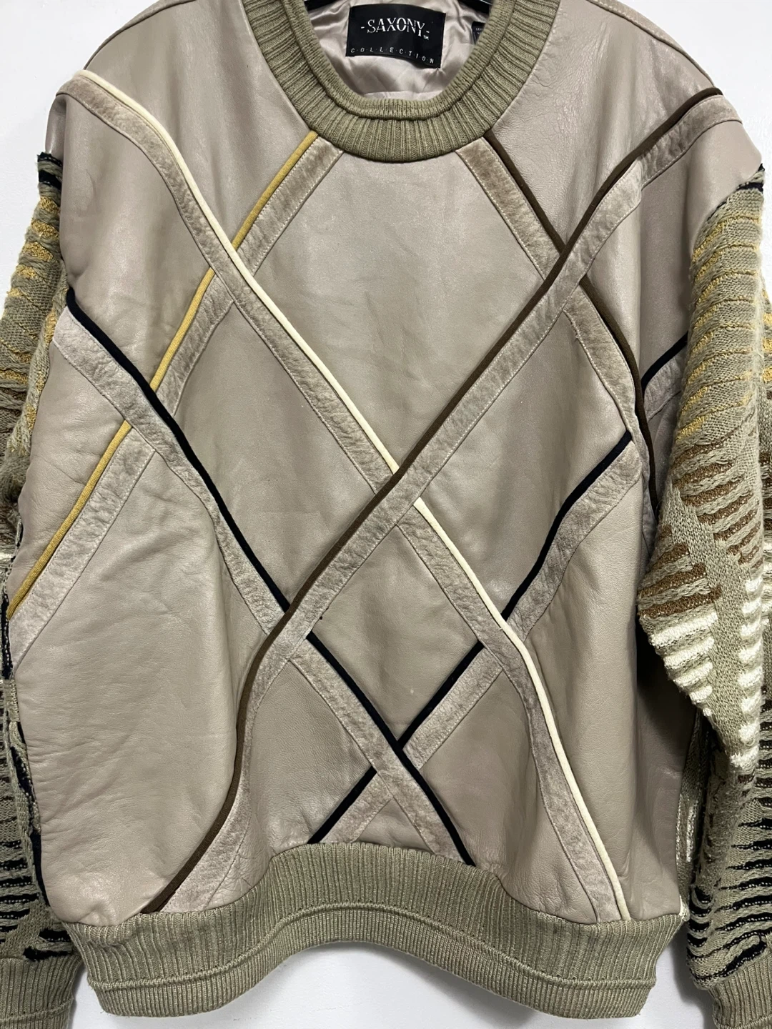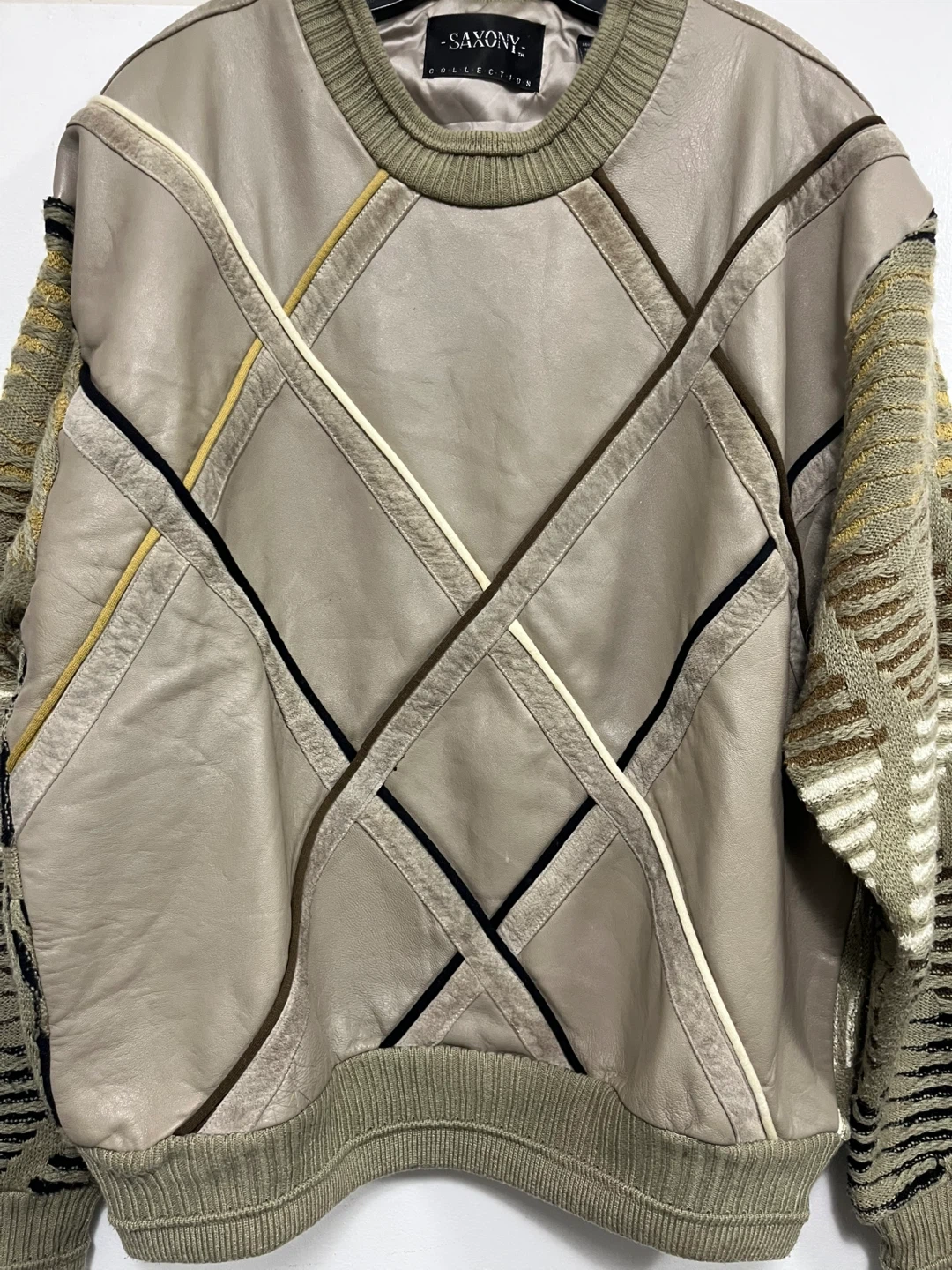 Saxony Collection Leather & Knit Patchwork Sweater - Size M