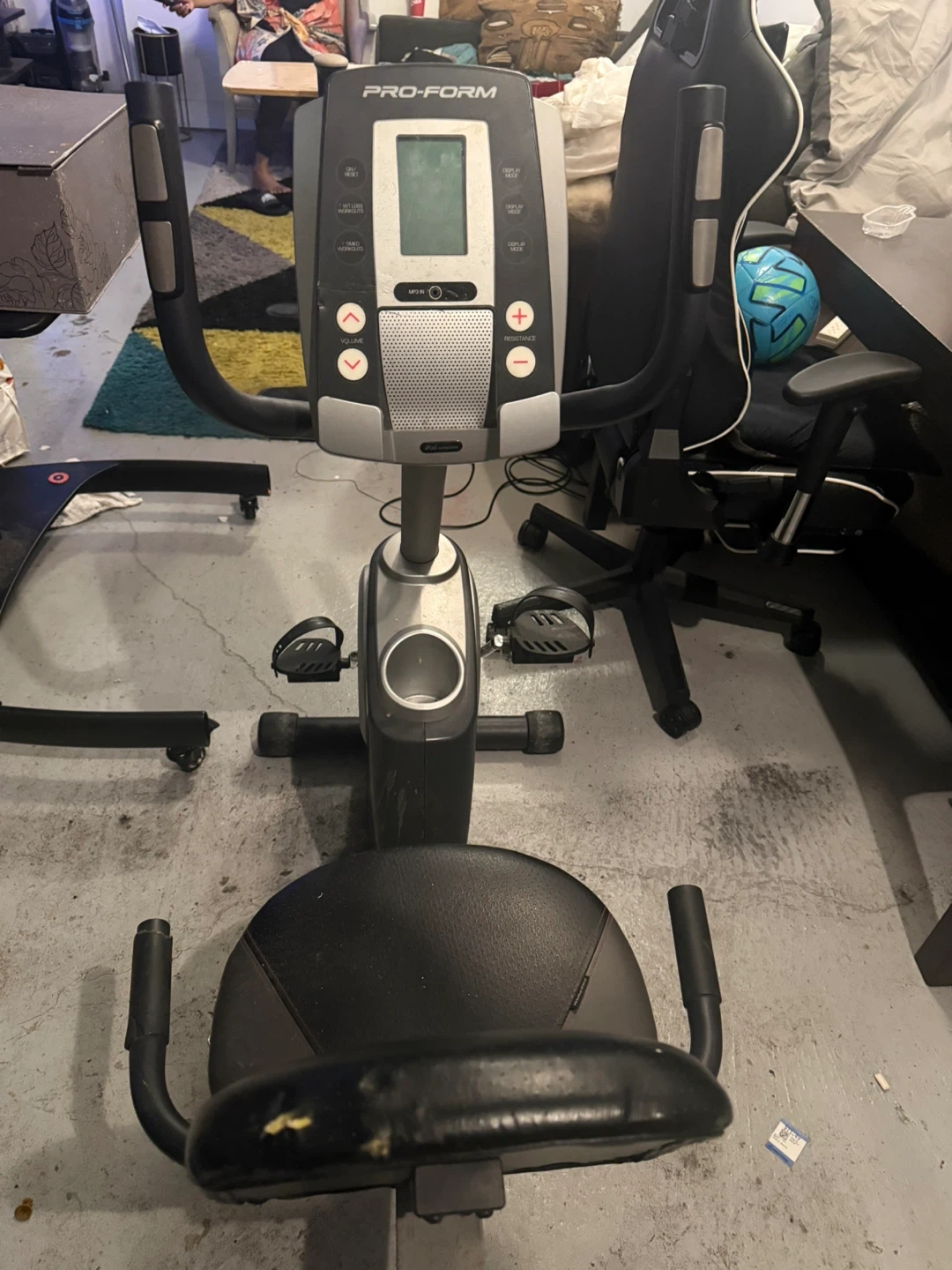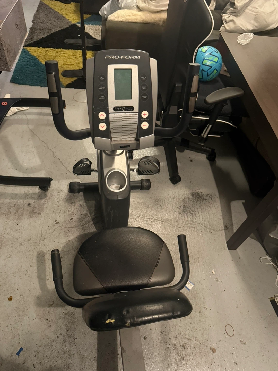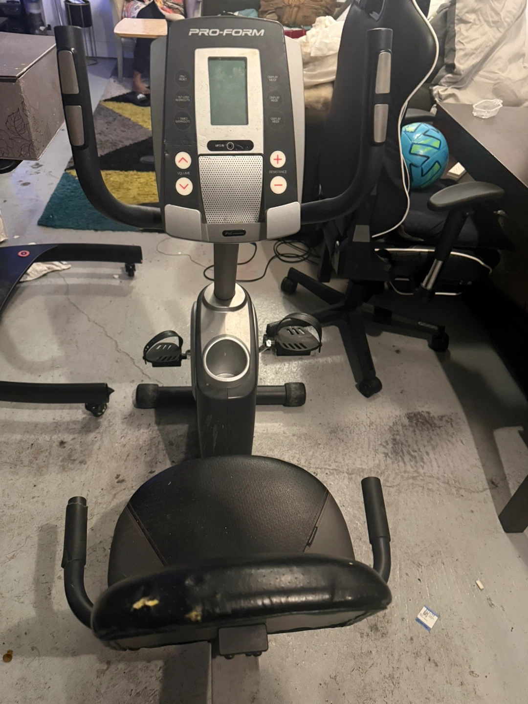 Selling a used Pro-Form exercise bike. It's in good working condition and ready for a new home gym! Perfect for getting your cardio in during these chilly months. It has some signs of wear on the seat, but it doesn't affect the functionality at all. Get in touch if you're interested!