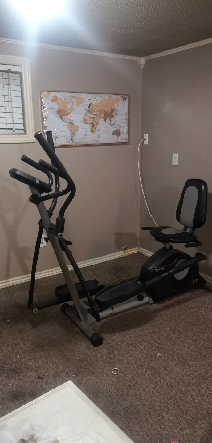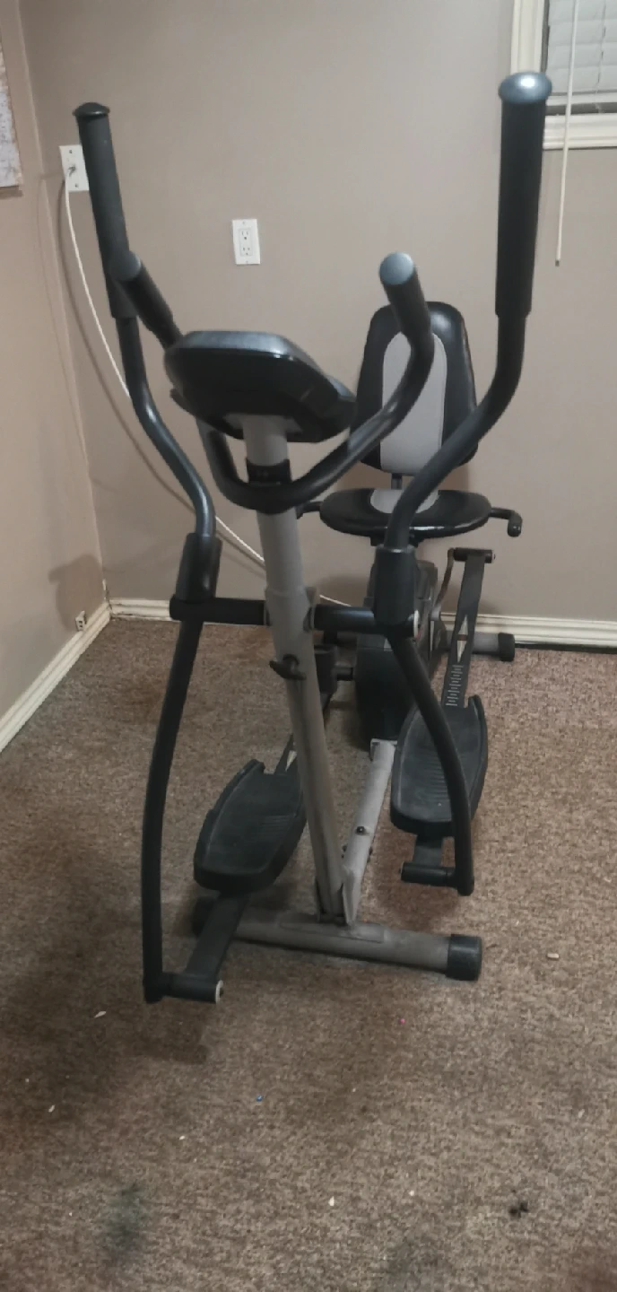Selling a Pro-Form Hybrid Trainer, which works as both an elliptical and a recumbent bike! It's in good working condition and ready for a new home. Great for getting a full-body workout without needing multiple machines