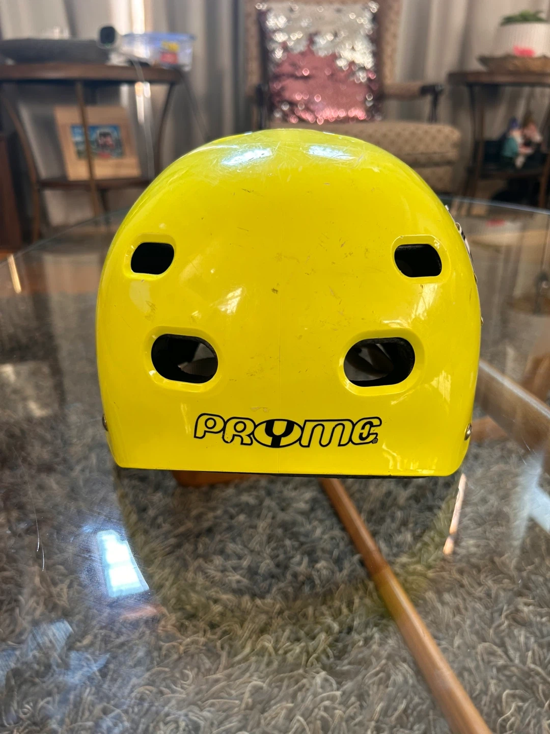 55Selling a Pro-Tec helmet in yellow! It has some signs of wear, but it's still in good condition for protecting your head while skating or biking. CASH ONLY!