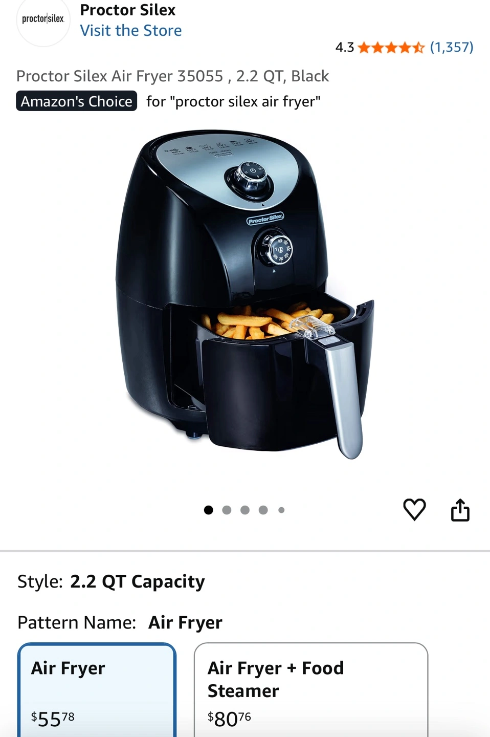 26This is a Proctor Silex Air Fryer, model 35055. It has a 2.2 QT capacity and comes in black. It's a great way to enjoy your favourite fried foods with less oil!