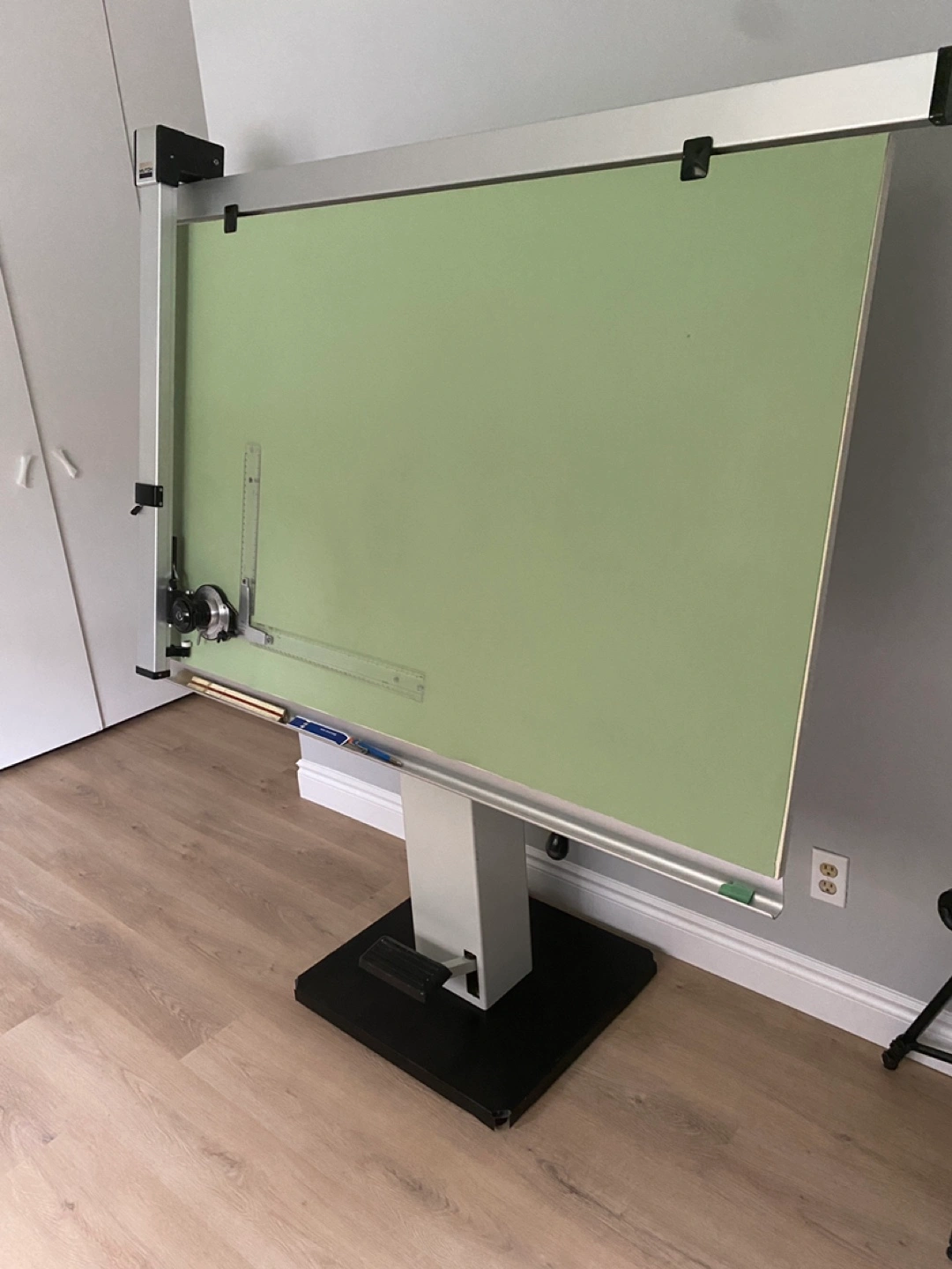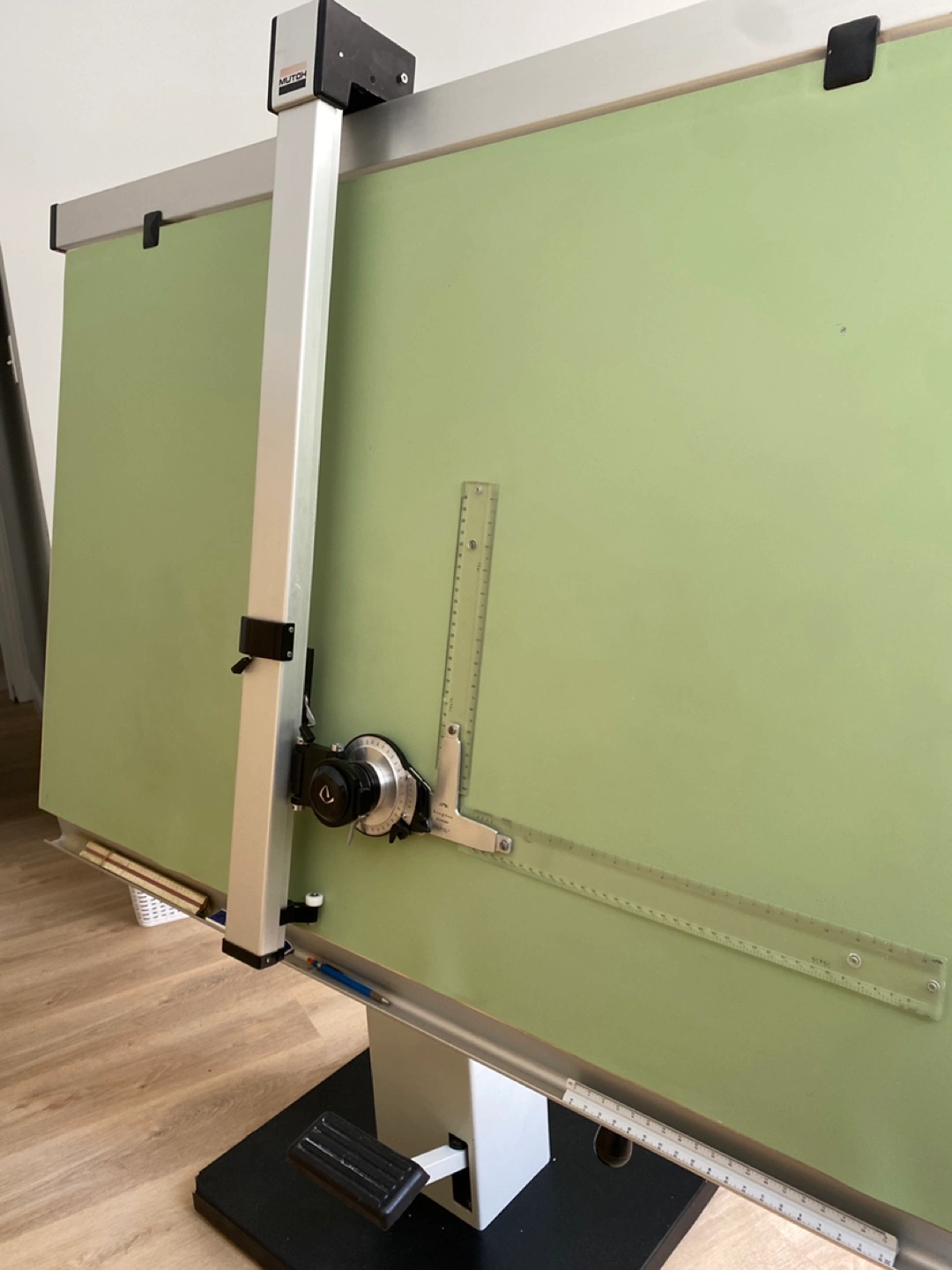 This is a Cold War-era Robotron REISS table from East Germany, upgraded with a Mutoh precision drafting arm from Japan. Perfect for architecture, engineering & design students or professionals Robotron REISS table + Mutoh precision arm. Fully adjustable height & angle. Please feel free to ask any questions about it. I'll deliver at no extra cost. Delivery available. $800