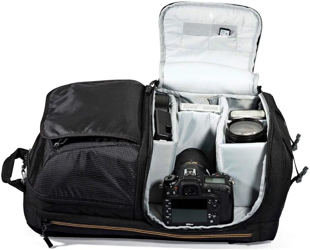 Unleash Adventure with Lowepro Fastpack Pro BP 250 AW II – a trusted globetrotter's ally, now lighter at 1.45 kg and tougher than ever! Enhanced with All Weather AW Cover™, PU-coated fabrics for dirt/abrasion/moisture resistance, and CradleFit™ impact protection, it safeguards your pro mirrorless/DSLR with grip, 2-3 lenses, or drone kit. Stay organized with three zones: customizable camera compartment (28 x 15 x 25.5 cm) with EVA dividers and QuickDoor™ access; padded 15" laptop pocket (27.5 x 2 x 41 cm); and personal gear space. Padded waist belt ensures comfort, while 25L volume (14L devices) keeps it compact (external: 31.5 x 23.5 x 54 cm). In sleek BLACK with 200D polyester, it's built for photographers on the move. open to offers