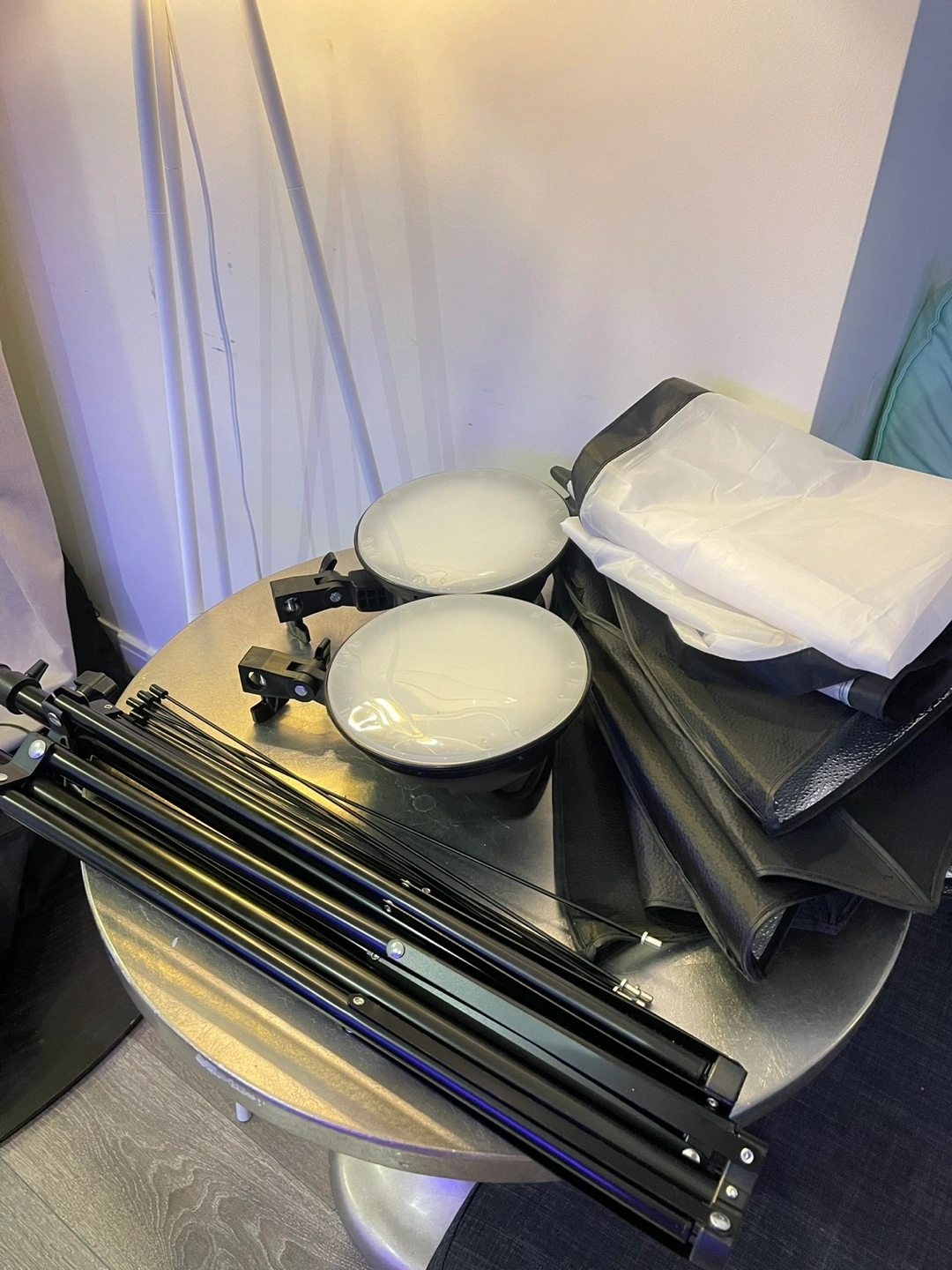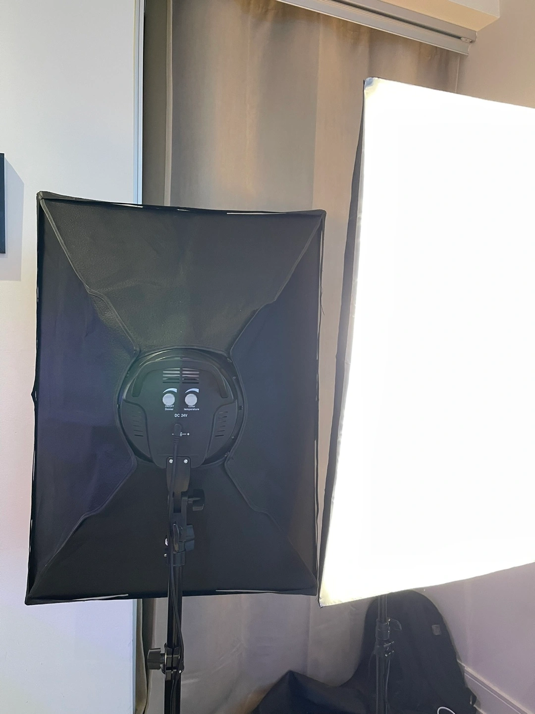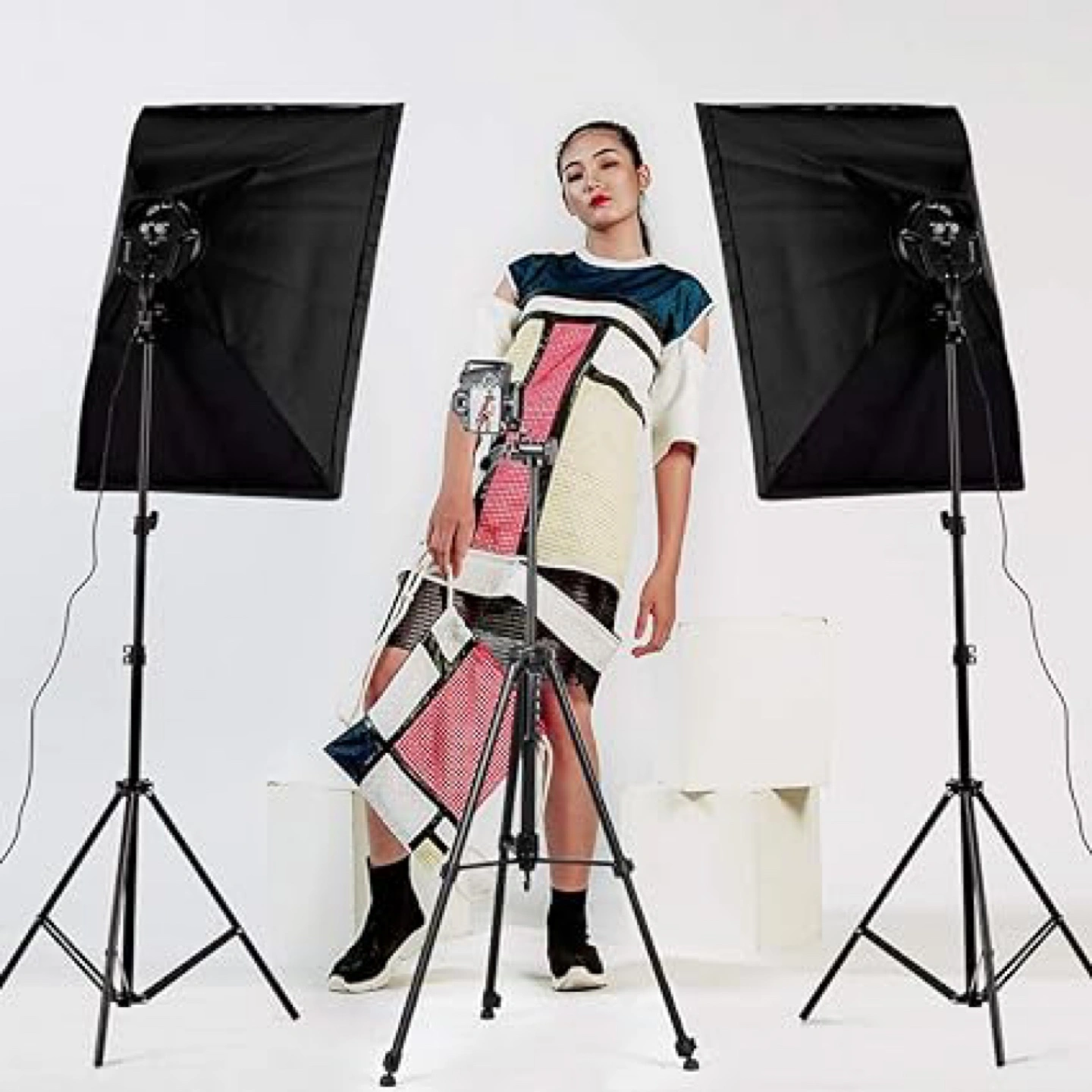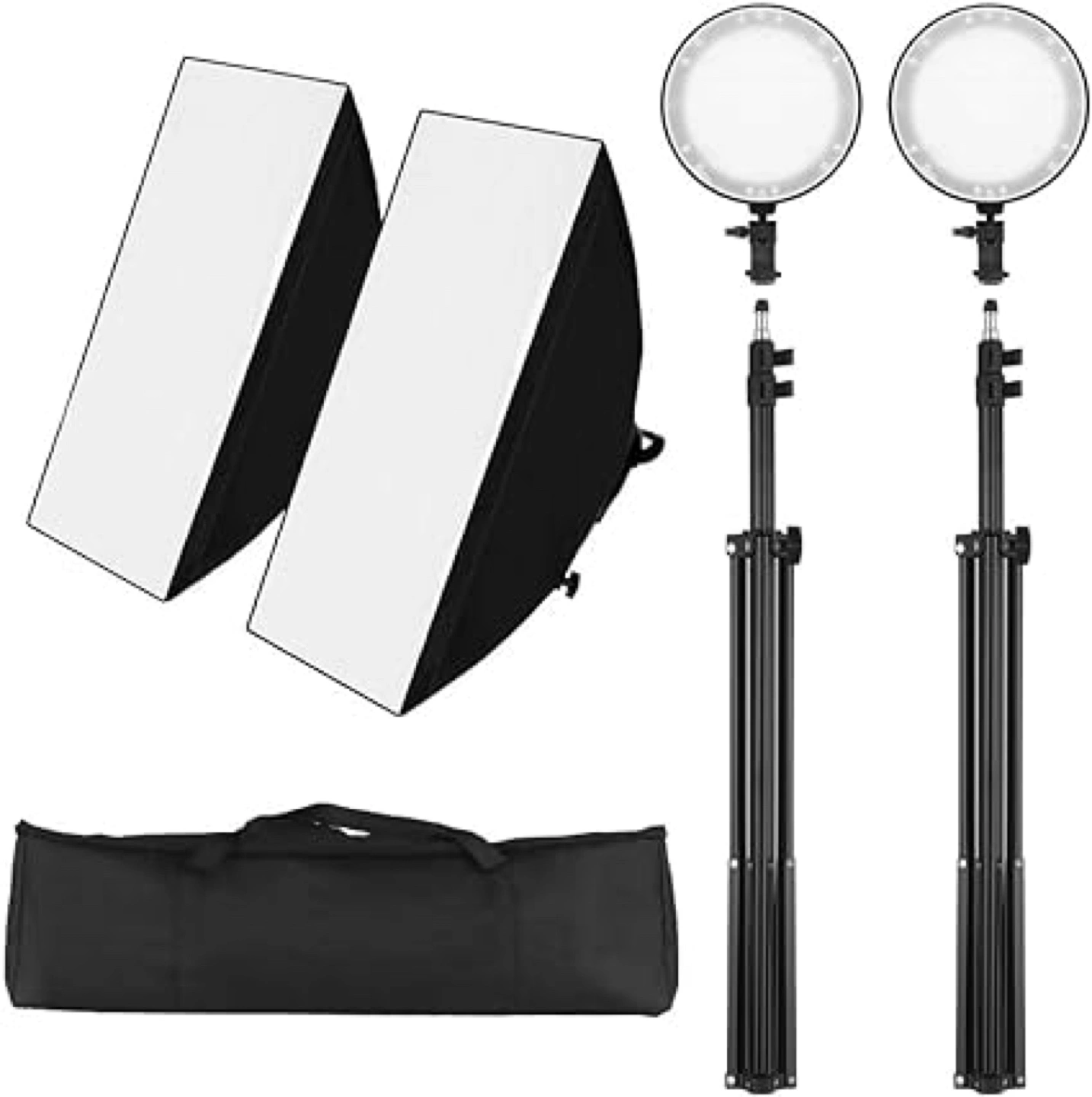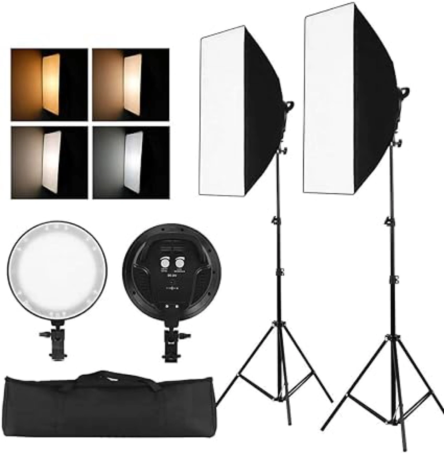 130Two LED studio lights with adjustable brightness. Includes light stands, softboxes, and a carrying bag for easy transport. Great for product photography or videography. Portable and easy to set up. >>> 2x Softbox: 50 * 70 cm >>> 2x LED Light Kit: 40W Bi-color Temperature 3200K-6400K - Dimmable >>> 2x Light Stands: 2 meters https://www.walmart.ca/en/ip/Andoer-Professional-Studio-Photography-Softbox-LED-Light-Kit-Including-50-70cm-Softboxes-2-45W-Bi-color-Temperature-3200K-6400K-Dimmable-Lights-2M-St/1EKT18TG5LV9