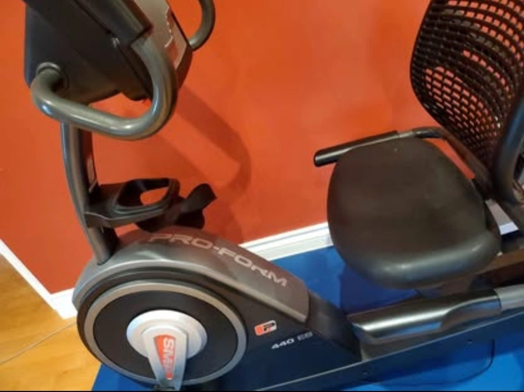 34Recumbent exercise bike. Great for low-impact cardio workouts. Features adjustable resistance and comfortable seating. Used but in good condition.