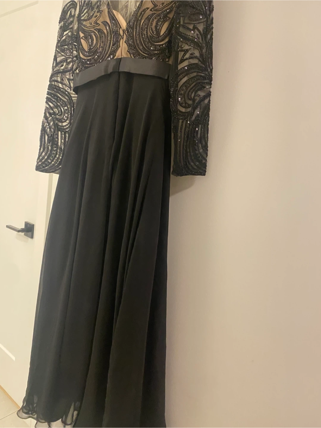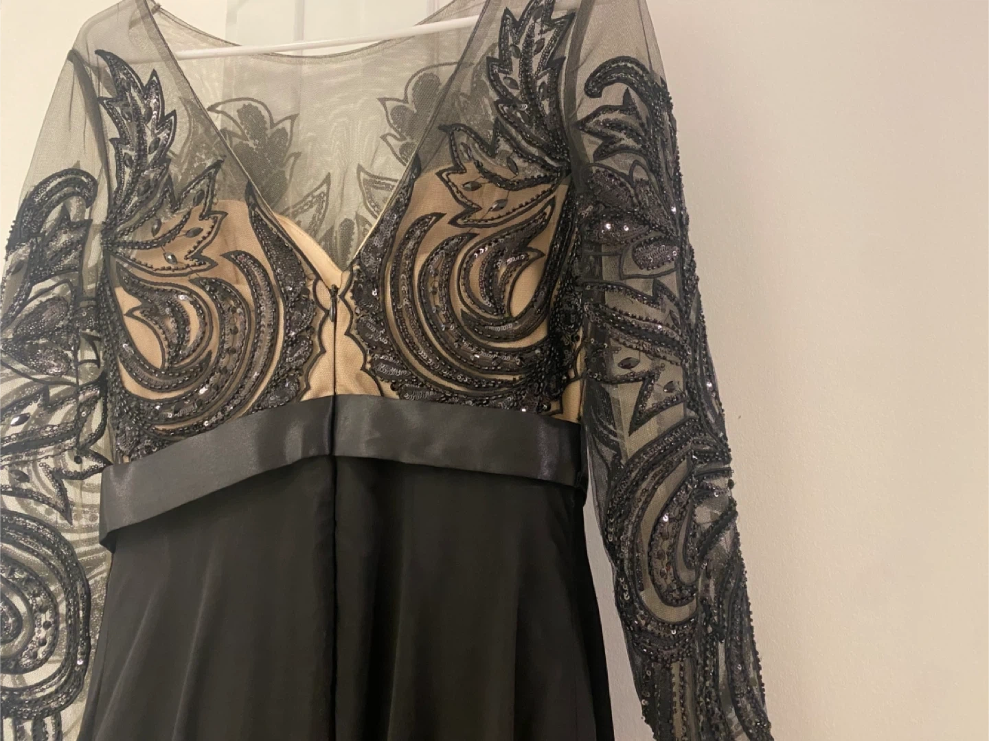 10Selling a beautiful black dress with intricate embellishments on the bodice and sleeves. It's in great condition and perfect for a special occasion! Size: Small (26” waist, 56” length) • Worn only once for 4 hours — excellent condition • Features a 12” back zipper for a flattering fit Originally purchased for $80 — open to reasonable offers. Pickup in Langley (19945 Brydon Crescent).