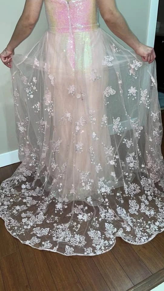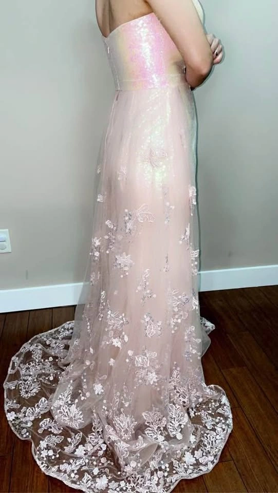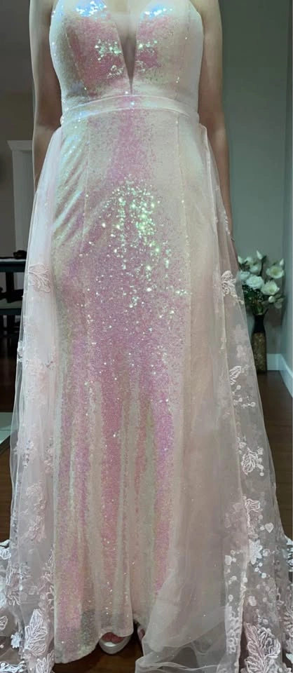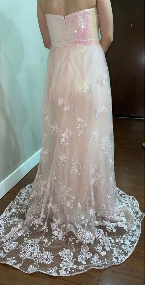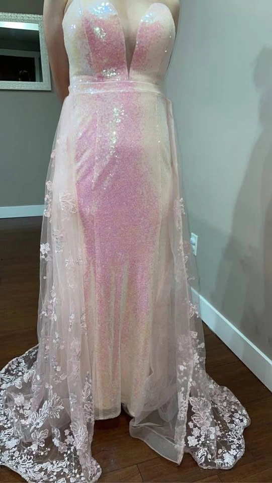 5Luxury baby pink prom dress for sale. I just wore it for a few hours at my cousin’s wedding. It's in excellent condition. No damage at all. The size can fit small to medium. Pick up location Surrey.