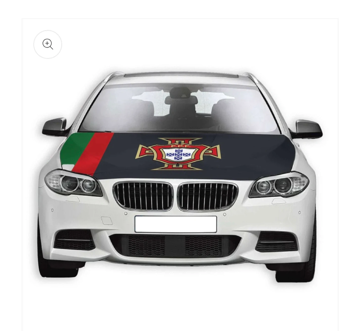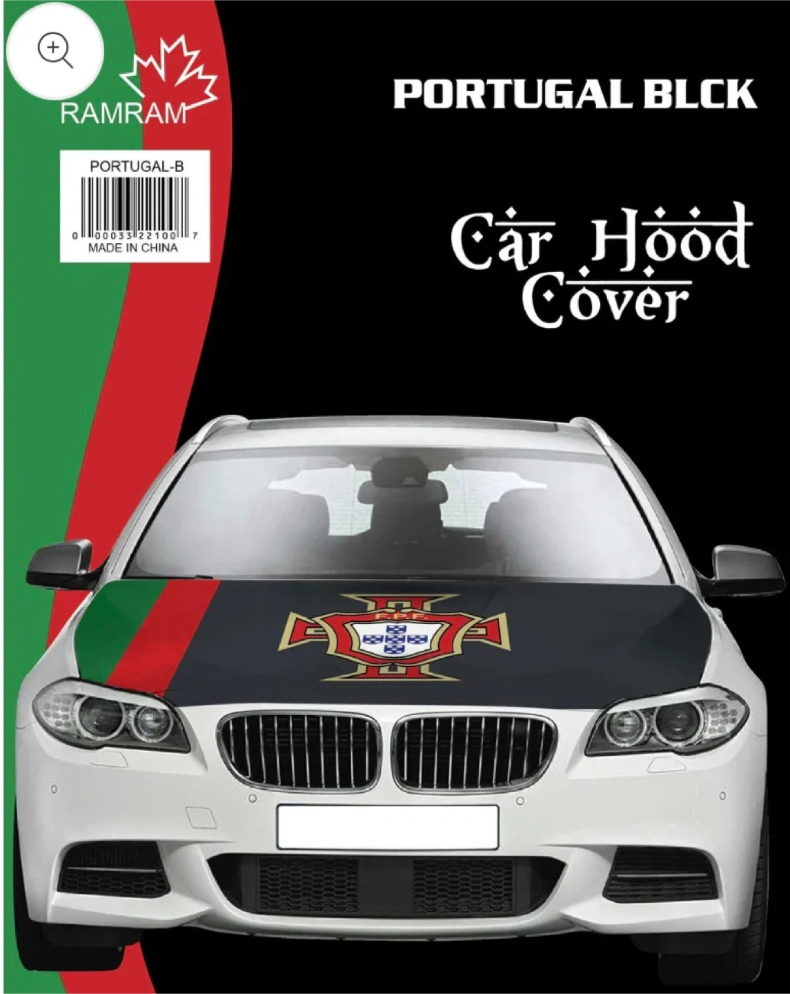 Portugal Blk car hood cover featuring the Portuguese national crest. Protects your car's hood with team spirit. Easy to install and remove.