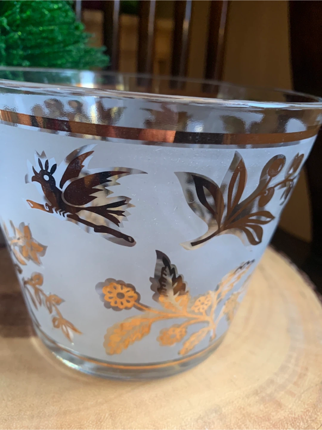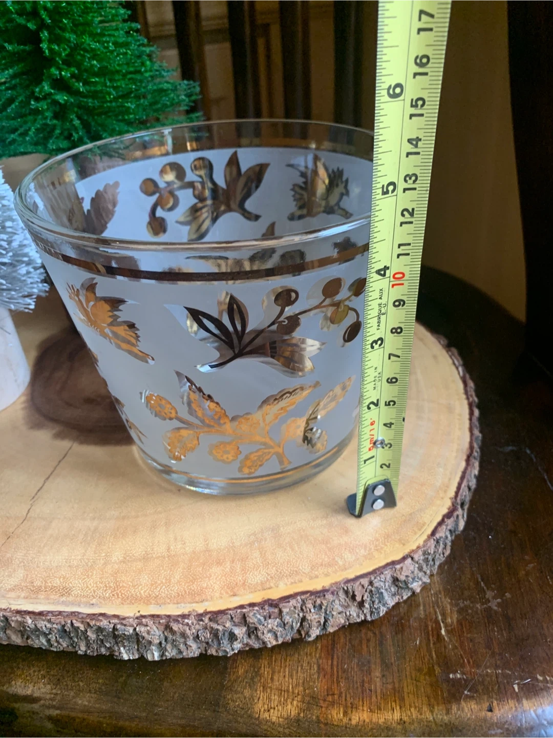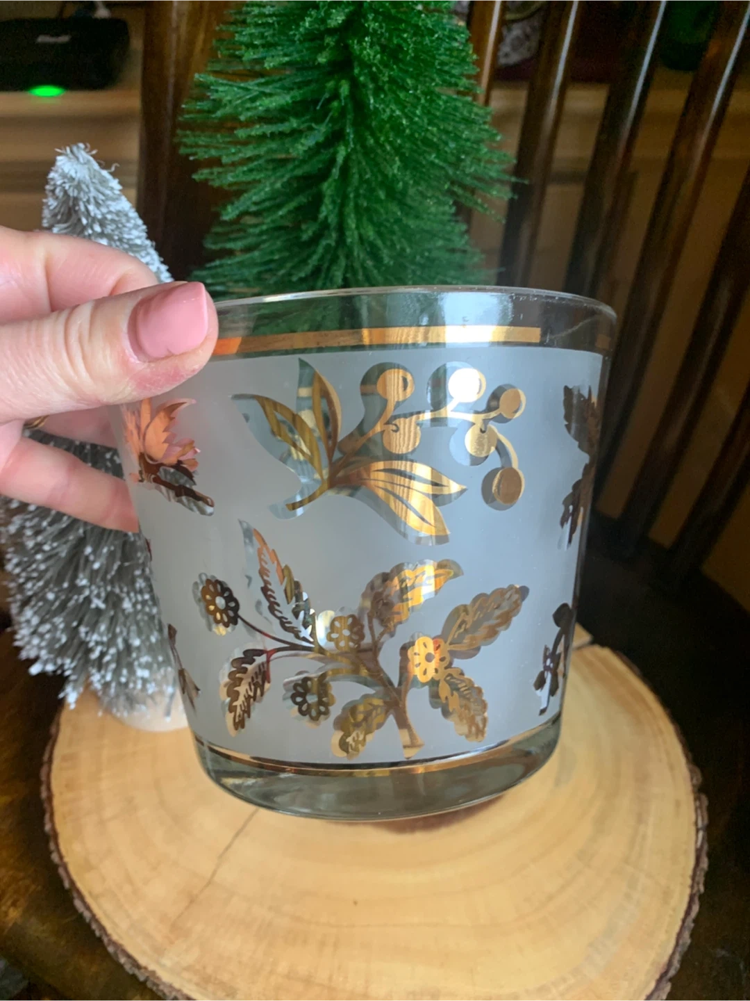 Vintage Libbey Frosted Glass/Gold Leaf Ice Bucket