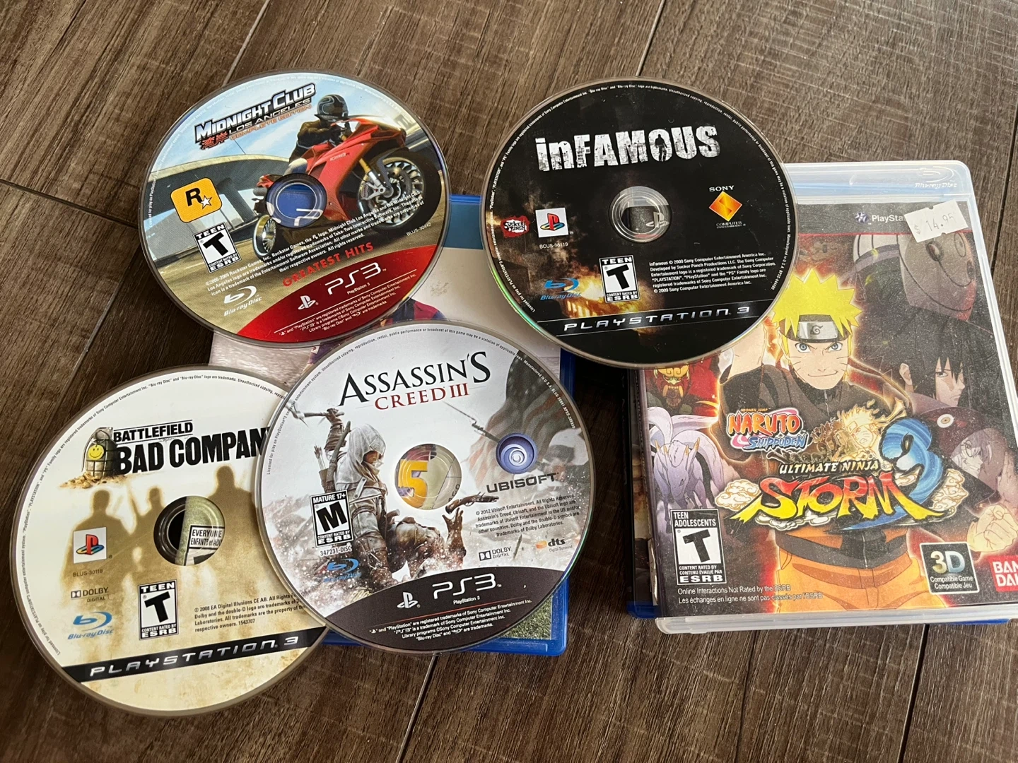 23Selling a collection of PlayStation 3 (PS3) games! Titles include: - Midnight Club Los Angeles: Greatest Hits - inFAMOUS - Battlefield Bad Company - Assassin's Creed III - Naruto Shippuden: Ultimate Ninja Storm 3 All games are in used condition. Perfect for adding to your PS3 collection!