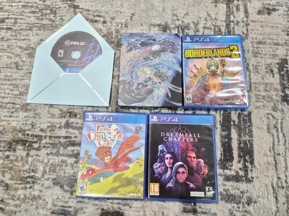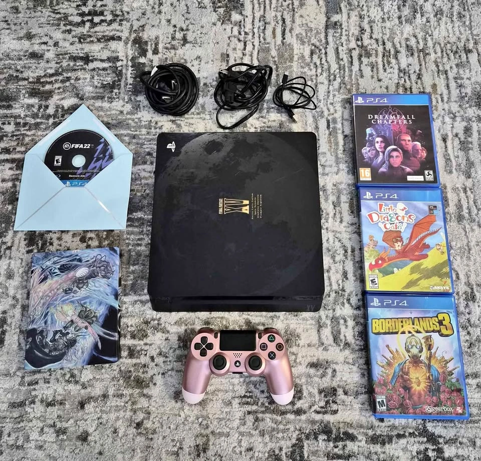 65Selling my Final Fantasy XV Limited Edition PS4 Slim (1TB) bundle. Everything works perfectly — just some cosmetic scratches, some dust, and a missing side cover (shown in photos). System has been tested and reset, ready for it's new home! Includes: Final Fantasy XV PS4 Slim console (limited edition design) Power cable & HDMI Pink DualShock 4 controller (great condition) 5 games total: Final Fantasy XV (Steelbook Edition) Dreamfall Chapters Little Dragons Café Borderlands 3 FIFA 22 (disc only) ✅ Fully functional, ready to play 💨 Priced to sell fast at $200 firm 📍 Pickup: Cornerstone NE, Calgary 🚫 Smoke-free, pet-free home