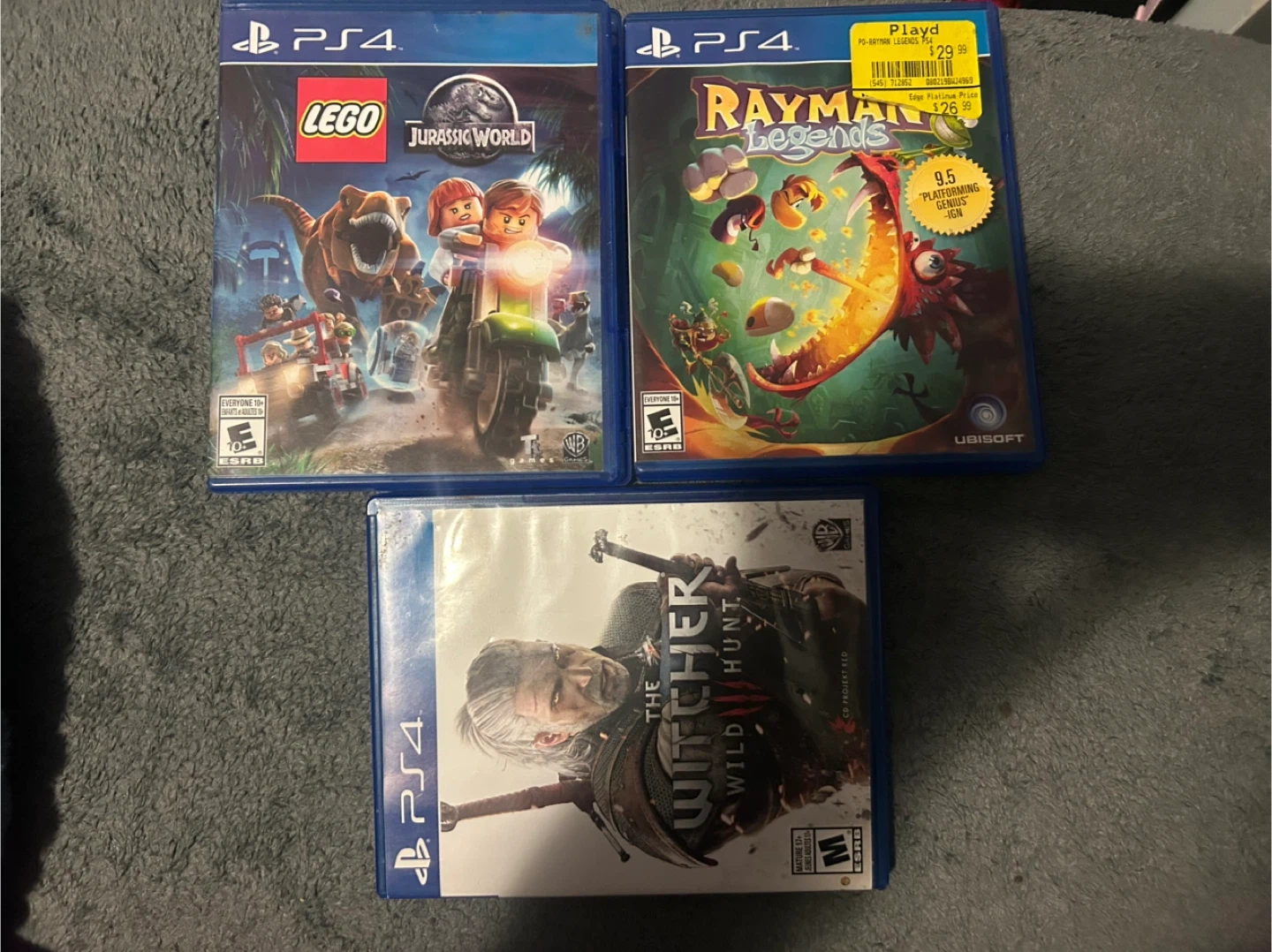 20Selling three PS4 games together: LEGO Jurassic World, Rayman Legends, and The Witcher 3: Wild Hunt! Rayman Legends has a sticker indicating it originally sold for $29.99. All games are in good condition and ready for a new home