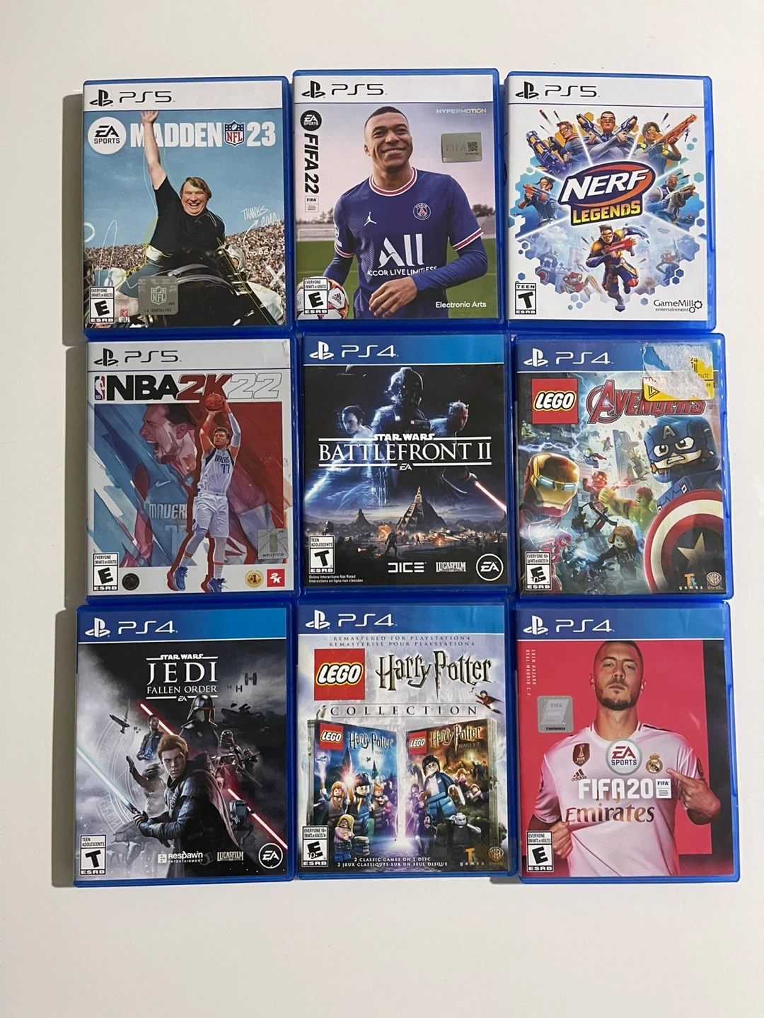 84PS4 Games: Star Wars Battlefront II Lego Avengers Star Wars Fallen Order Lego Harry Potter Collection Fifa 20 PS5 Games: Maden 23 Fifa 22 Nerf Legends NBA 2K22 Looking to sell all together. $40 for all of it. Pick up Kingston & Warden, Scarborough M1N3B8