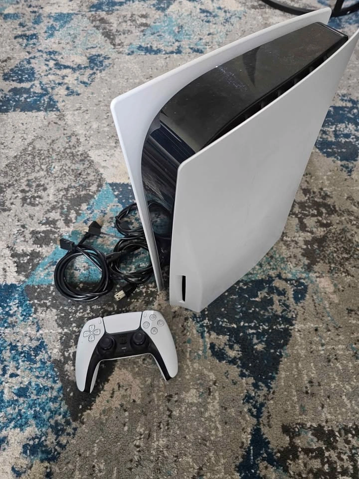 1000+PS5 Disc edition console - PS5 DualSense controller - Power cable - HDMI cable - Controller cable The PS5 console is in great cosmetic and working condition. The PS5 controller is like-new and is in great overall condition. Items can be tested during pickup if needed. Pick up downtown Toronto ( Queen St W & Dufferin street area---M6J 0B1) Please don't hesitate to contact me with any questions. I'm happy to answer them. Thank you