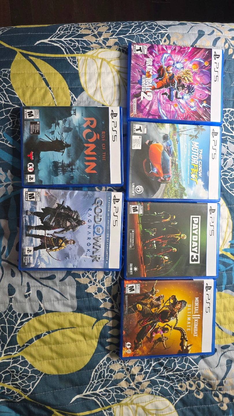 60Selling a few PS5 games in great condition: - God of War Ragnarok - Rise of the Ronin - Dragon Ball Z Kakarot + Season Pass - The Crew Motorfest - Payday 3 - Mortal Kombat 11 Ultimate