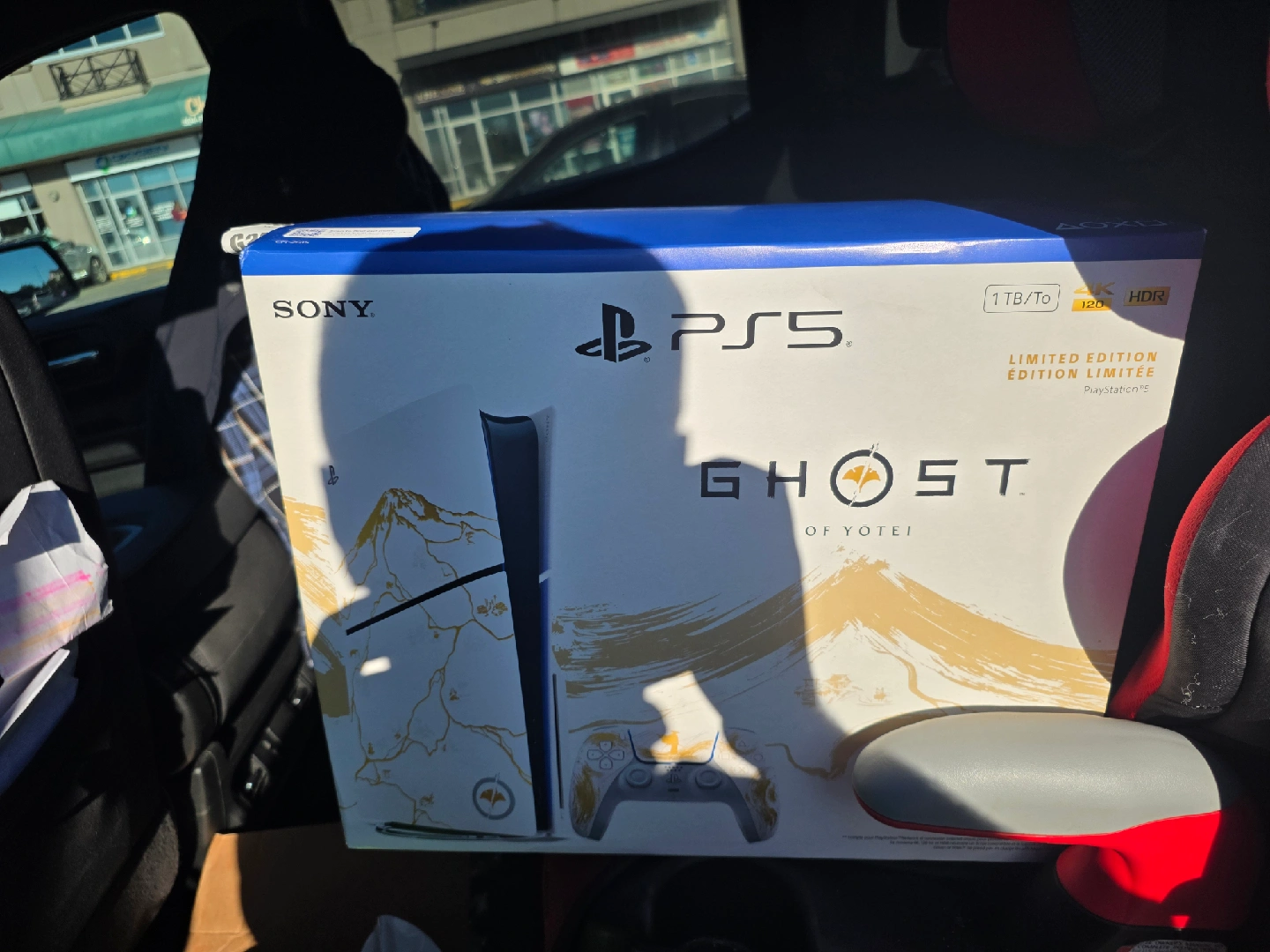Brand new sealed have receipt from gamestop. just picked up today. Coquitlam 7am-230pm Abbotsford 4pm-9pm Limited Edition PlayStation®5 console1 Limited Edition DualSense® wireless controller Ghost of Yotei™ full game voucher2 (includes pre-order digital content) 1TB SSD Disc Drive3 (attached to the console) 2 Horizontal Stand Feet HDMI® cable AC power cord USB cable, printed materials, ASTRO’S PLAYROOM (Pre-installed game) Even if your not a fan of the game that gold and white looks smooth 👌