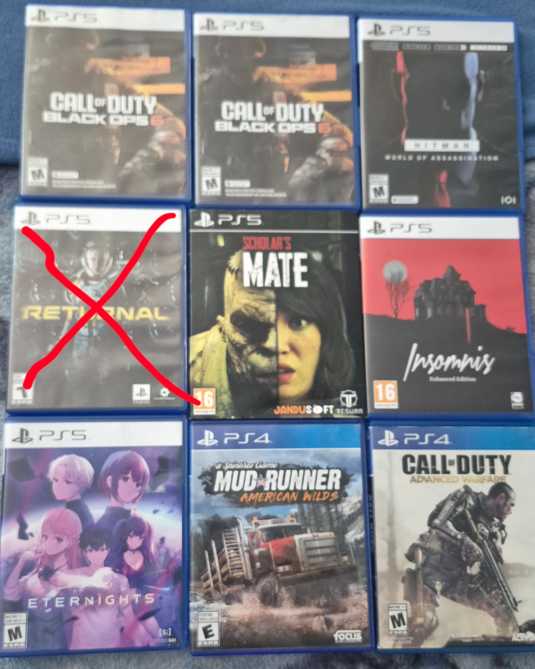 Excellent condition No scratches or issues Prices firm & quick sale Ps5 games: Hitman World of Assassination $30 Call of duty bop6 $35 each Eternight $15 Insomnis $20 Ps4 games: Mudrunner $20 Call of duty advance warfare $10