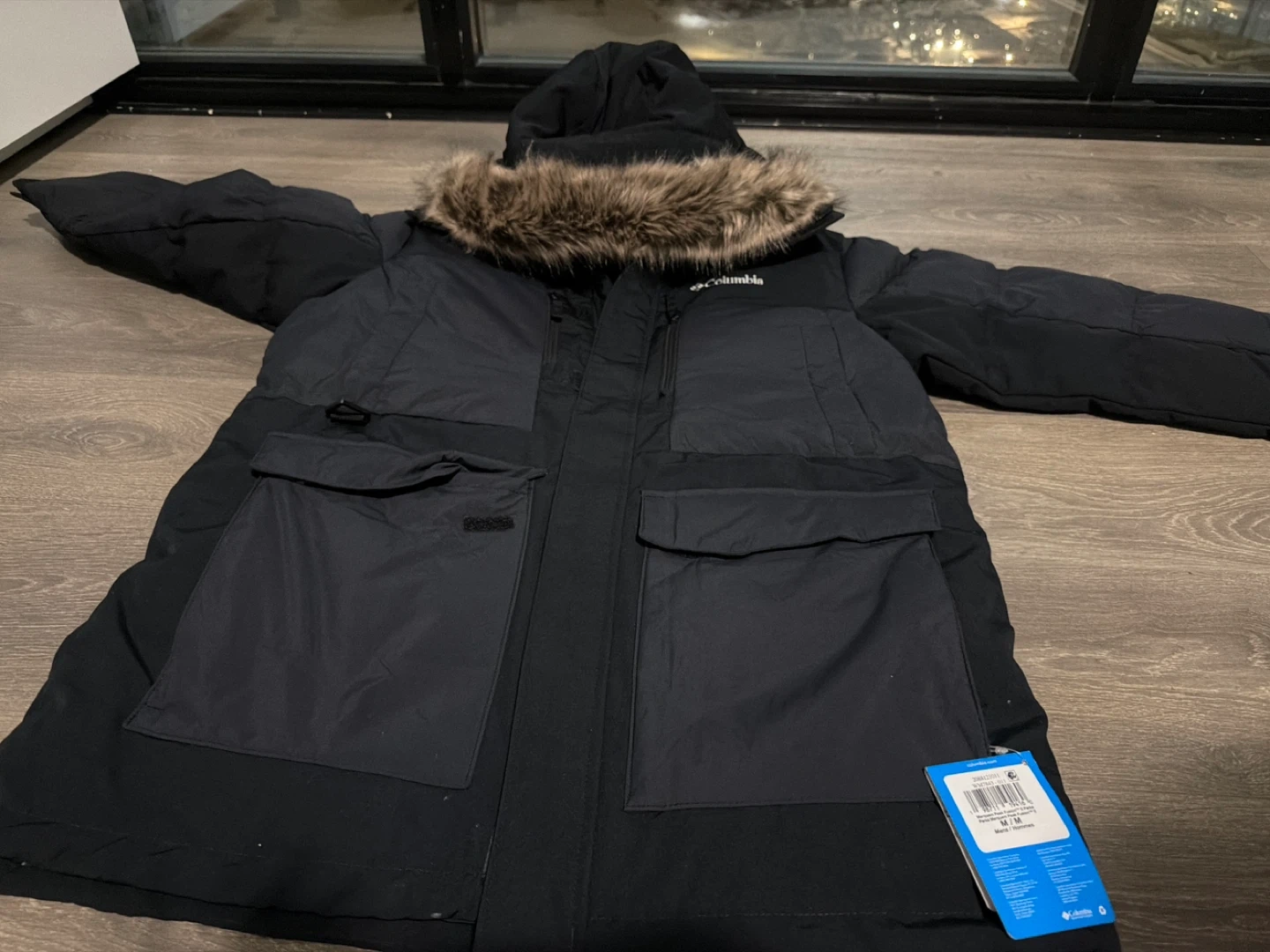 This is a Columbia Peak Fusion II Parka jacket in black. It's a size M and features Omni-Heat Infinity technology. It's a great jacket for staying warm.