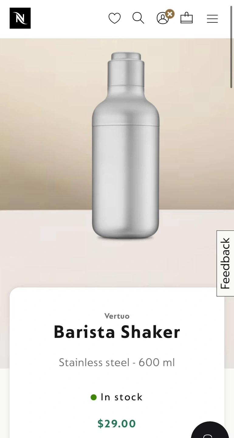 This Nespresso Vertuo Barista Shaker is made from stainless steel and has a 600ml capacity. It comes with the original box. This shaker's perfect for whipping up some tasty drinks!
