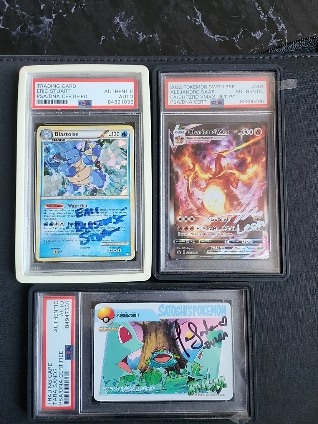 16Selling a few PSA certified Pokemon trading cards! Includes a Blastoise card, Charizard VMAX, and a Satoshi's Pokemon card. All are in great condition and ready for a new home!