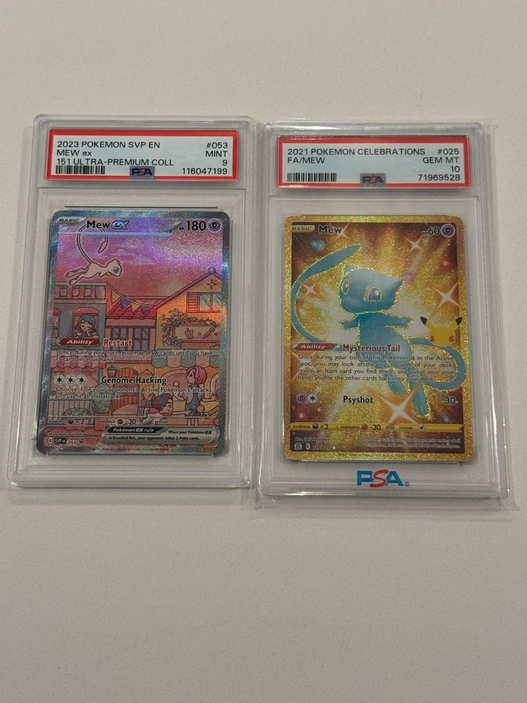 Selling PSA graded Pokemon cards featuring Mew! They are in great condition and ready for a new home. Perfect for any collector! Message me for prices