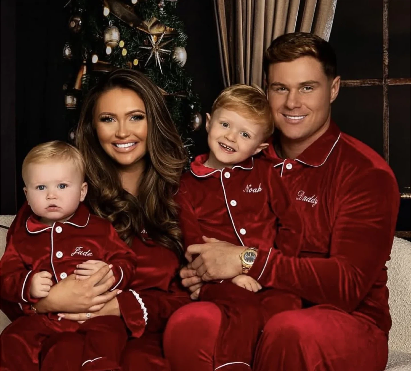 Selling red velvet pajamas. It has a mum and dad print on it. Perfect for the holidays! Tried on but never used, so technically new.