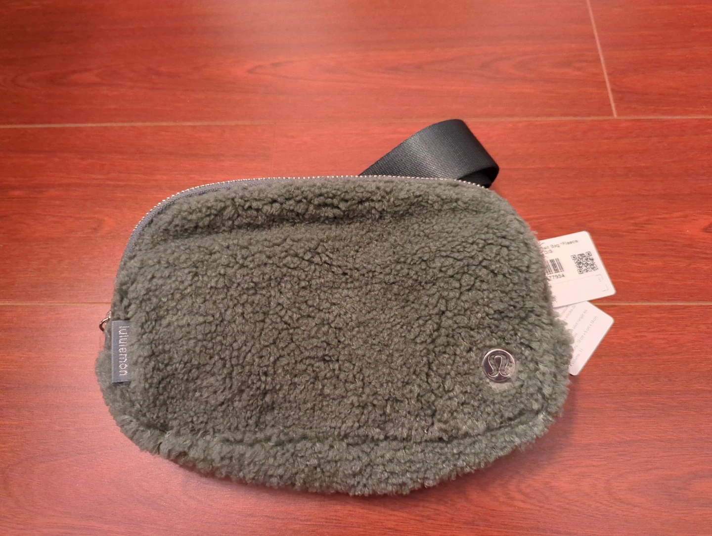 A brand new fuzzy Lululemon Everywhere Belt Bag in fleece material. Features a zipper closure and adjustable strap. Perfect for everyday essentials!