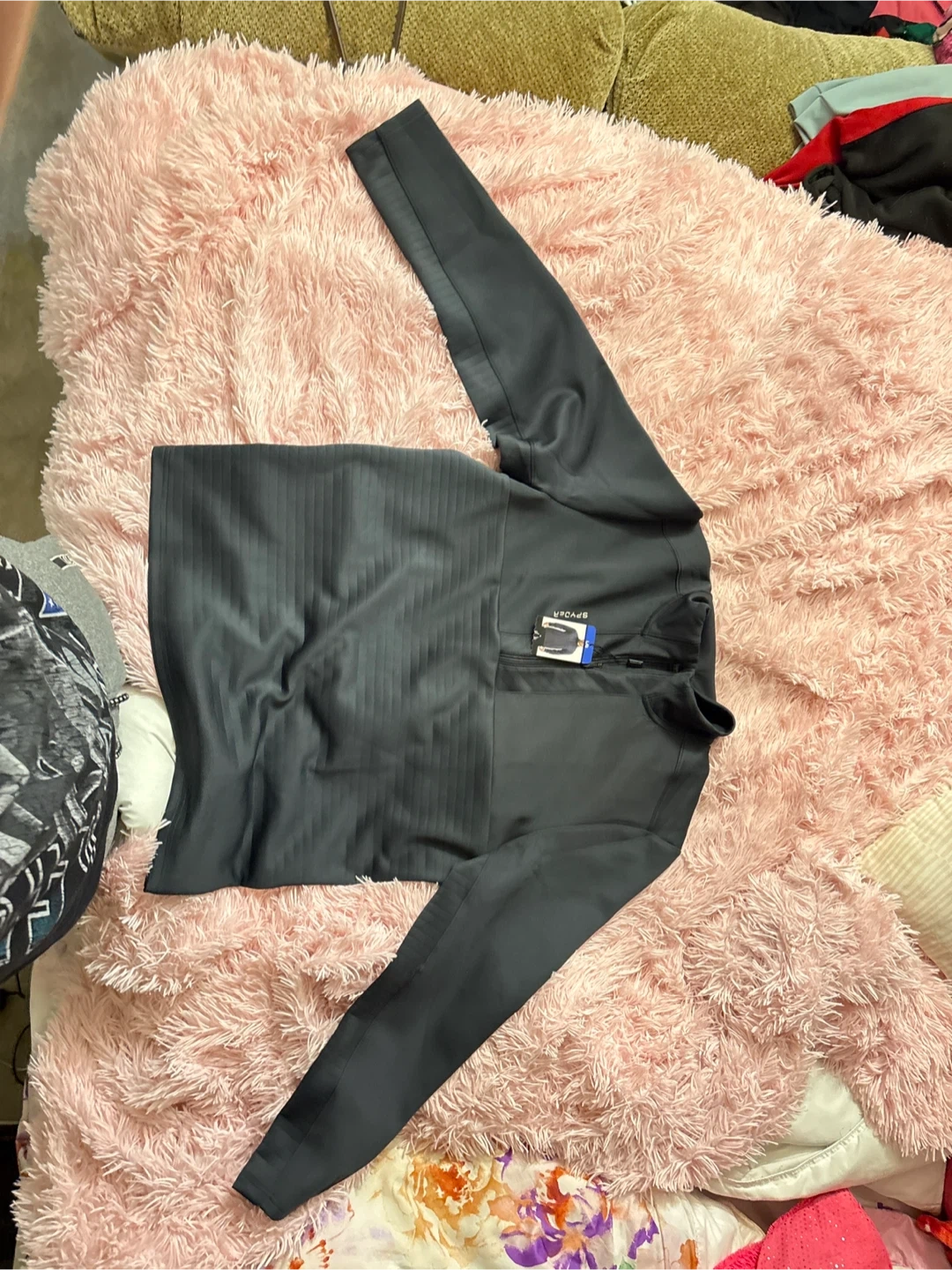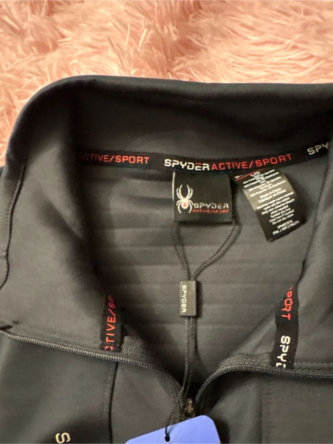 Spyder Active Sport quarter zip pullover in charcoal grey. Size large/grand. Made with a polyester blend for comfort and durability. Features a subtle ribbed texture on the upper chest and sleeves. Perfect for activewear or casual layering! Has never been worn and still has tag