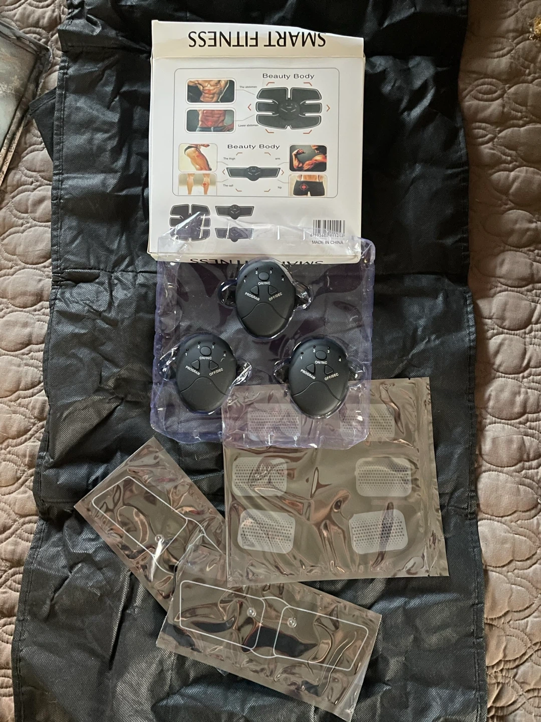 This is a Beauty Body Smart Fitness EMS machine for toning. It comes with multiple gel pads and controllers. The device is designed for abdominal and boot toning. It's easy to use for a quick workout.