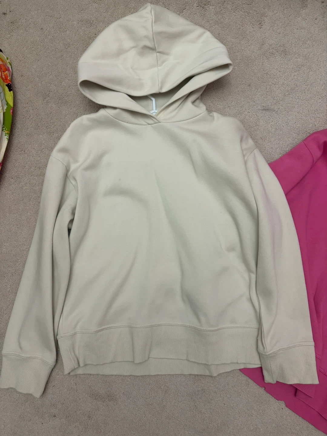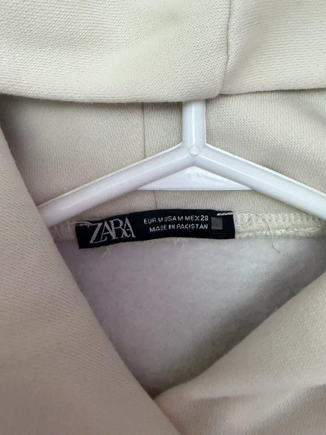 Two comfy ZARA hoodies. One in a neutral beige and the other in a bright pink. Both are size medium. Great for casual wear!