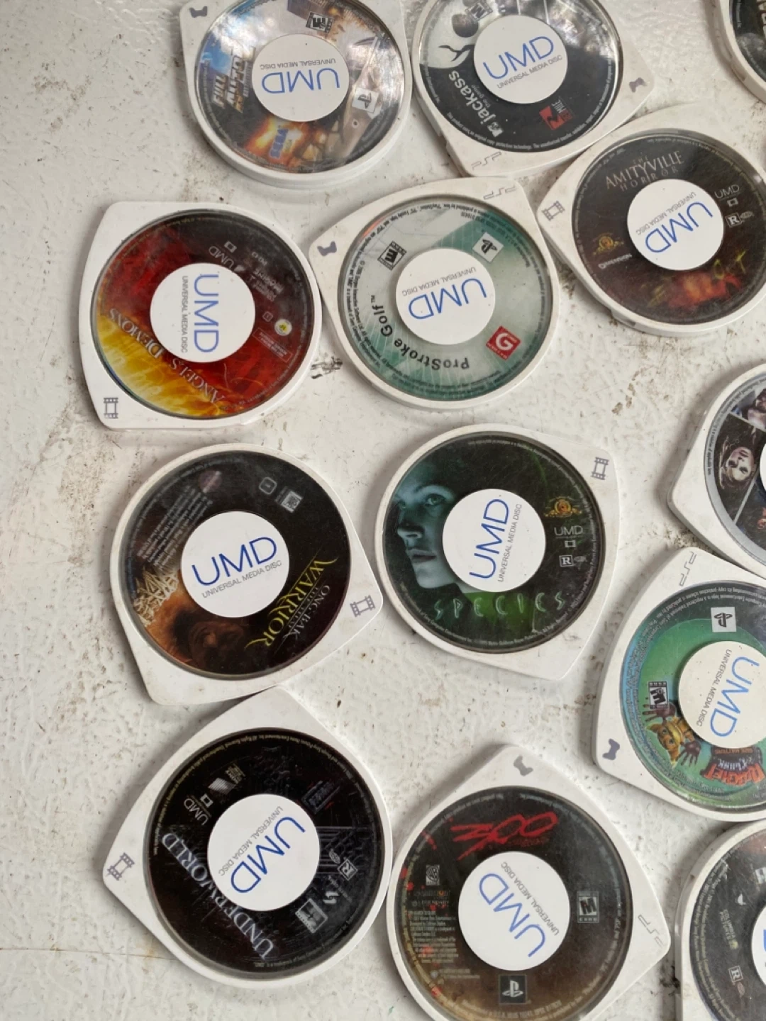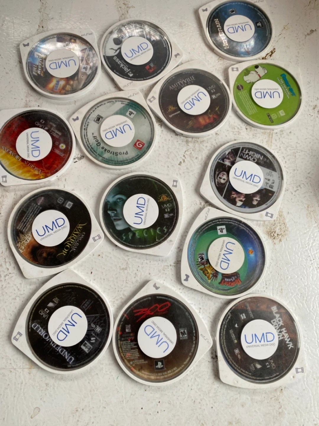 36Selling a collection of UMD (Universal Media Disc) movies for the PSP. Titles include Jackass, Amityville Horror, ProStroke Golf, Species, Black Hawk Down, and more! Great for anyone looking to relive the PSP era or expand their collection