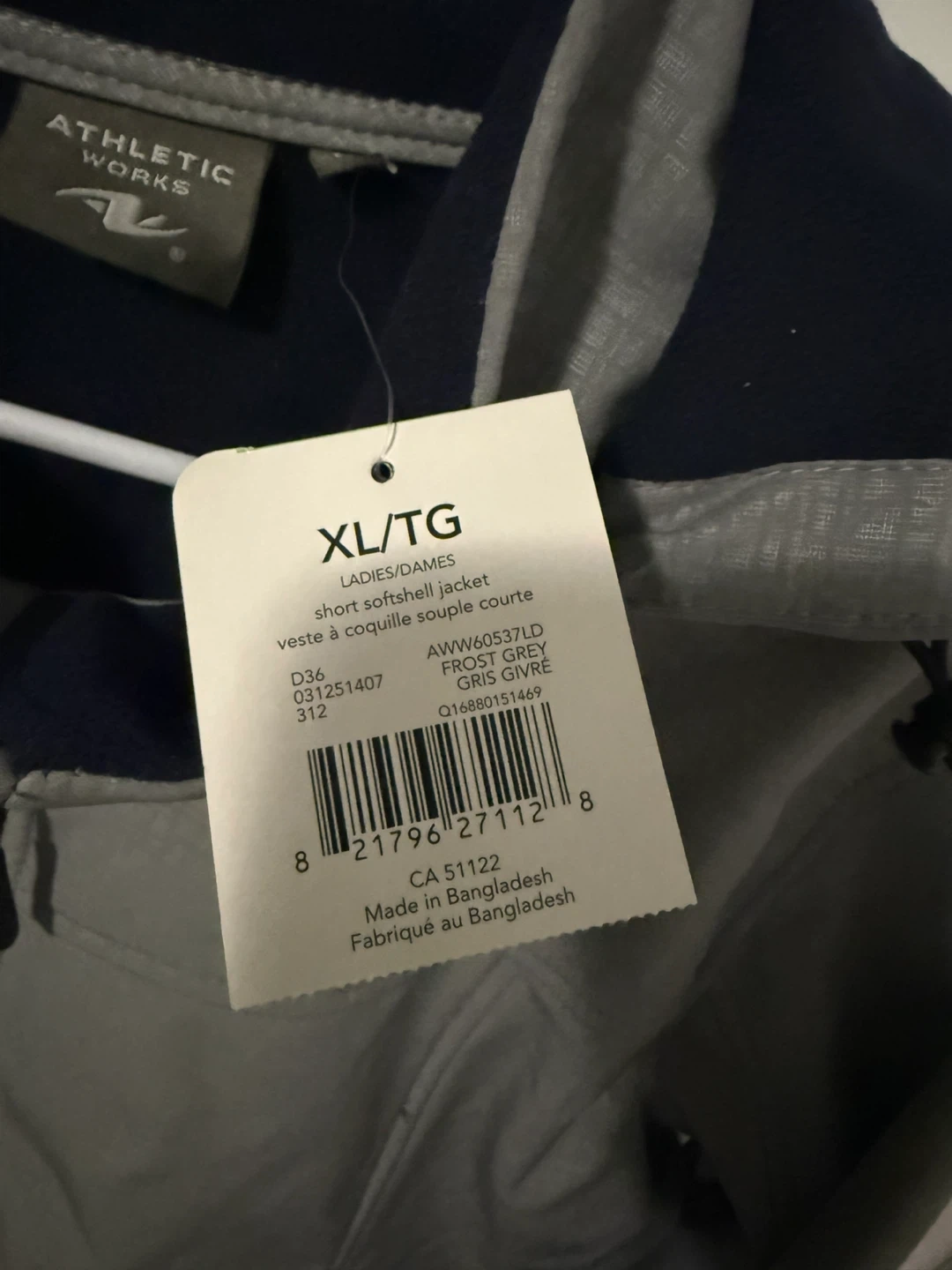Athletic Works ladies' short softshell jacket in Frost Grey. Size XL. Made in Bangladesh.