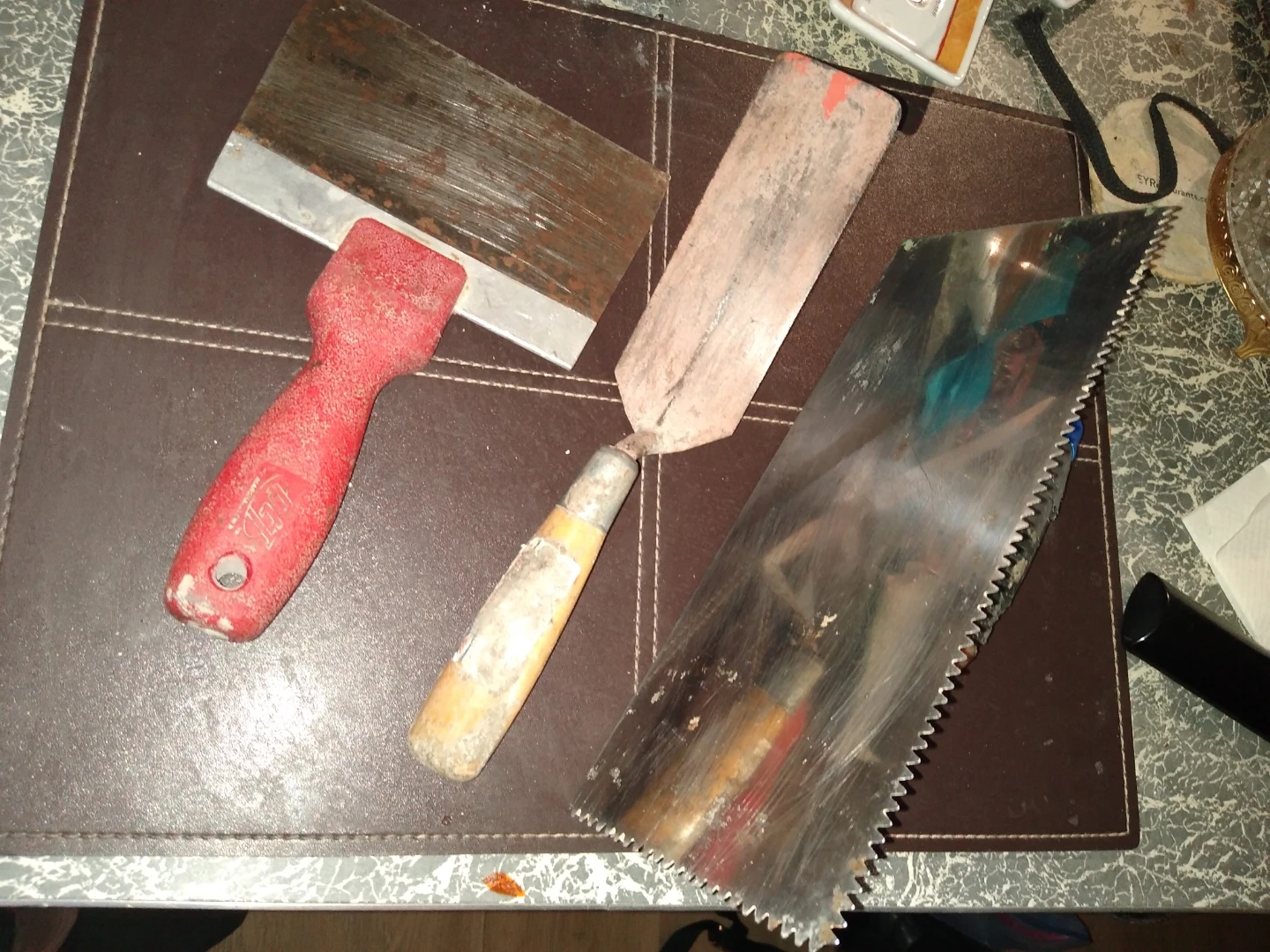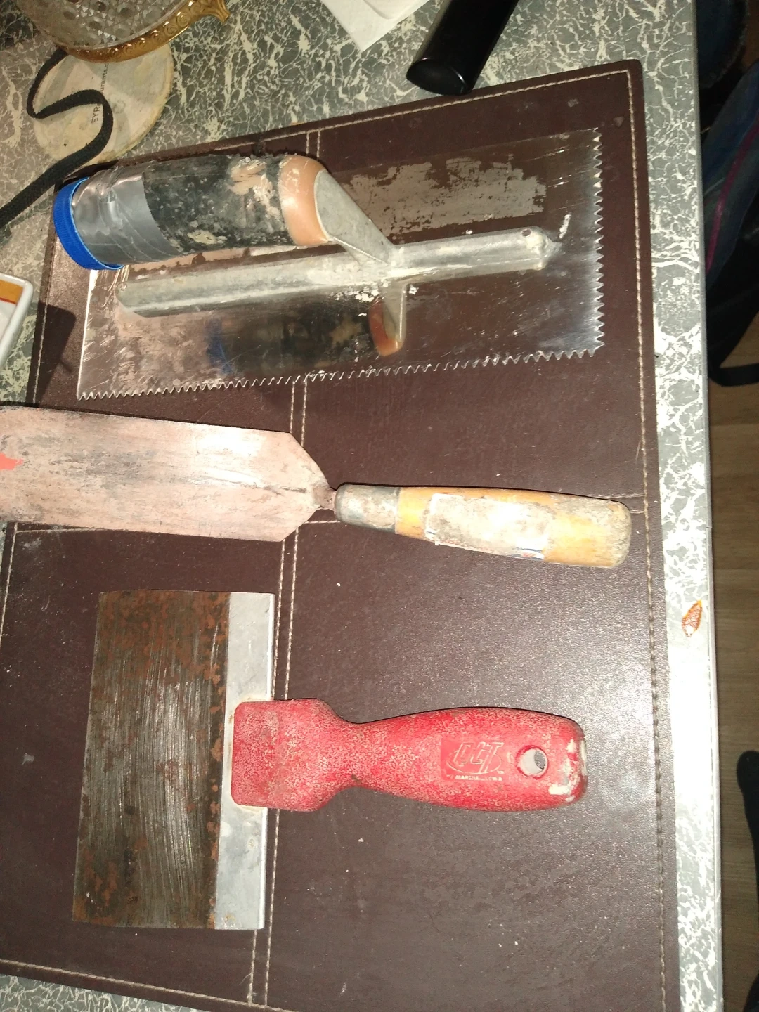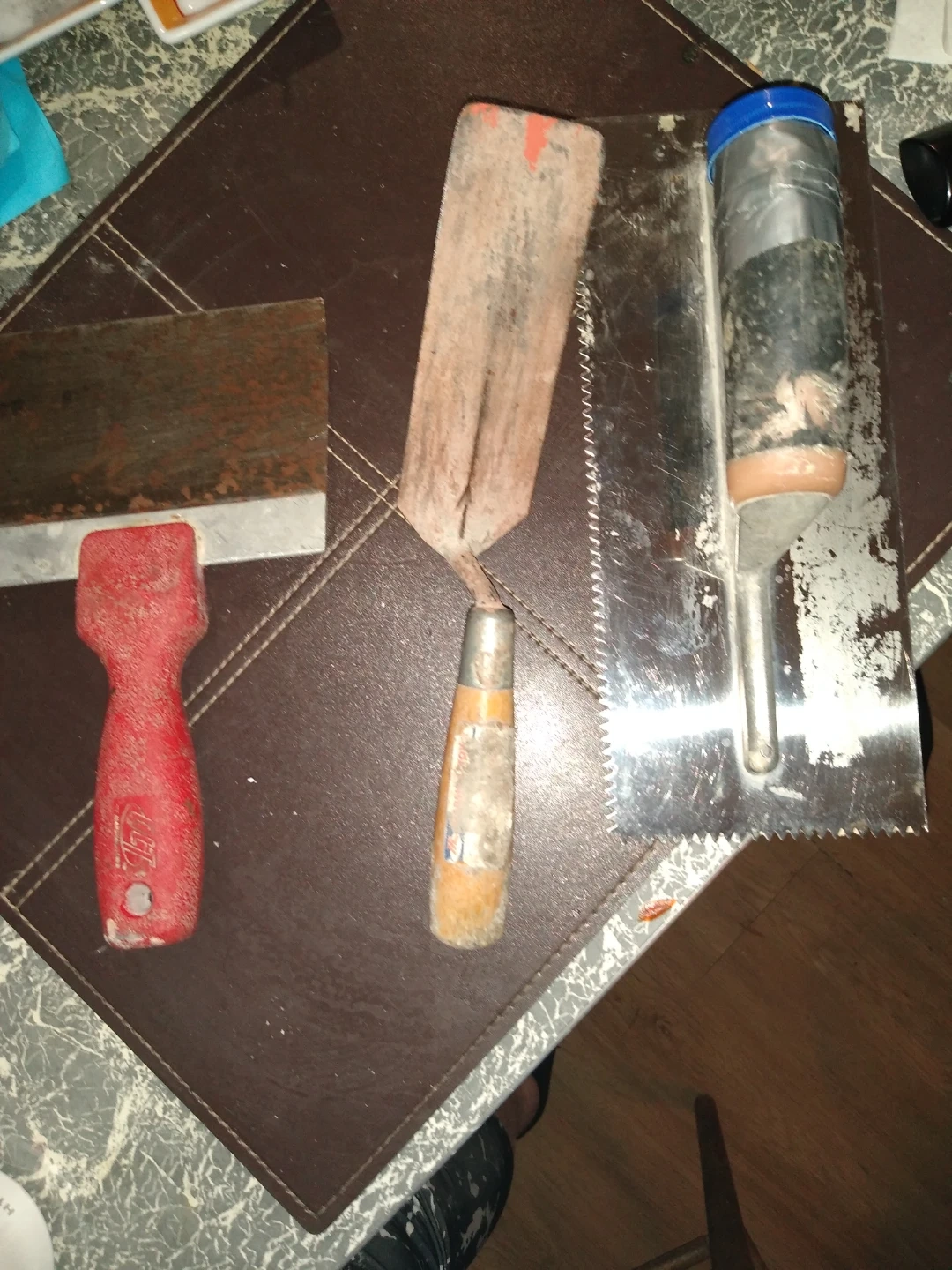 Three gently used plastering tools