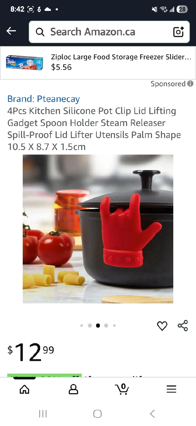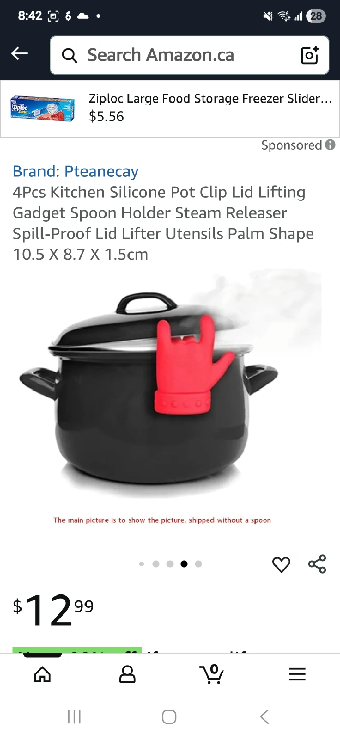 234I'm selling a red silicone pot clip from Pteanecay! It's designed to lift pot lids and hold spoons. It's shaped like a hand giving the "rock on" sign. According to the Amazon listing, it measures 10.5 x 8.7 x 1.5cm. Retails for $12.99.