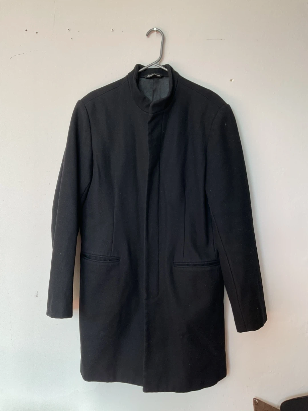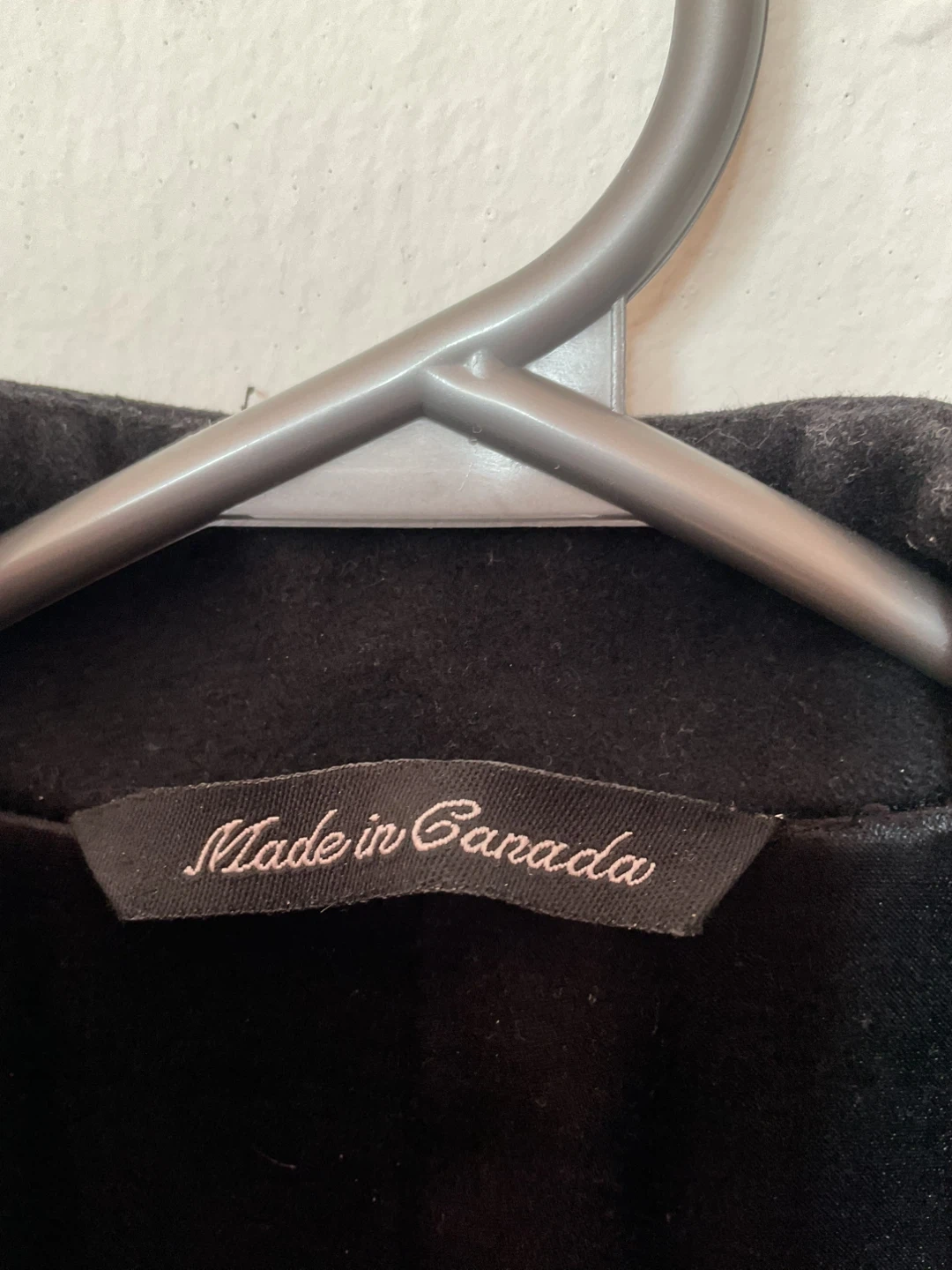 Le Chateau black wool blend coat, Made in Canada. It's fully lined with a satin-like material. This classic coat is great for cooler weather.