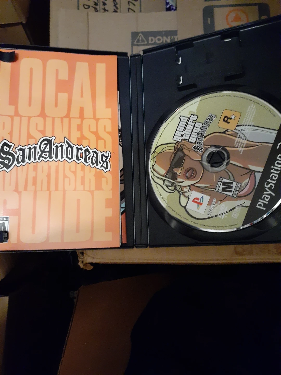This is Grand Theft Auto San Andreas for the PlayStation 2. It includes the game disc and the 'Local Business Advertiser's Guide'. The game is rated M for Mature. No scratches all manuals and posters are included