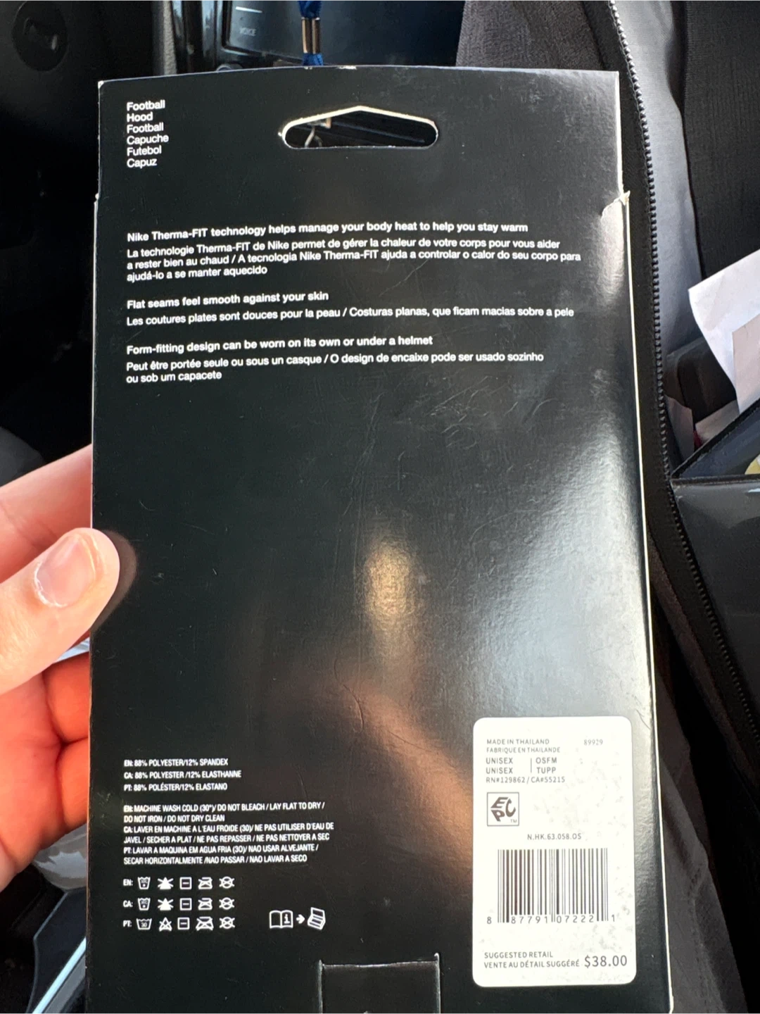 Stay warm with Nike Therma-FIT technology in this camouflage print hood. Flat seams ensure comfort against your skin. It's designed to be worn on its own or under a helmet. Made with 88% polyester and 12% spandex.