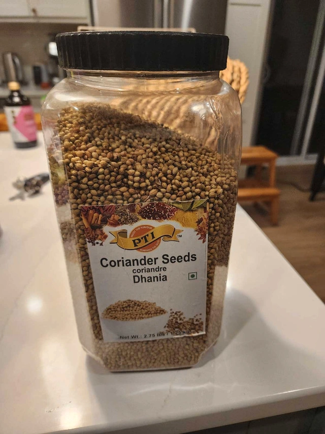 Enhance your culinary creations with this large jar of PTI Coriander Seeds, boasting a net weight of 2.75 lbs! This unopened jar is still filled with flavour, ready to bring an aromatic zest to your favourite recipes. Specifications: * Brand: PTI * Spice: Coriander Seeds * Weight: 2.75 lbs Spice up your kitchen adventures; you will find that this is the missing ingredient you have been searching for! If the ad is up, the coriander seeds are available.