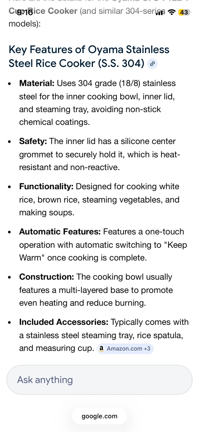 Perfect condition Oyama Stainless Steel Rice Cooker