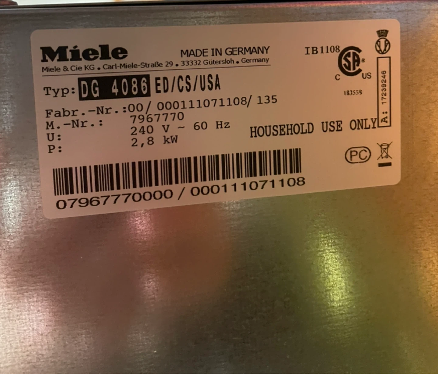 Miele DG 4086 Steam Oven