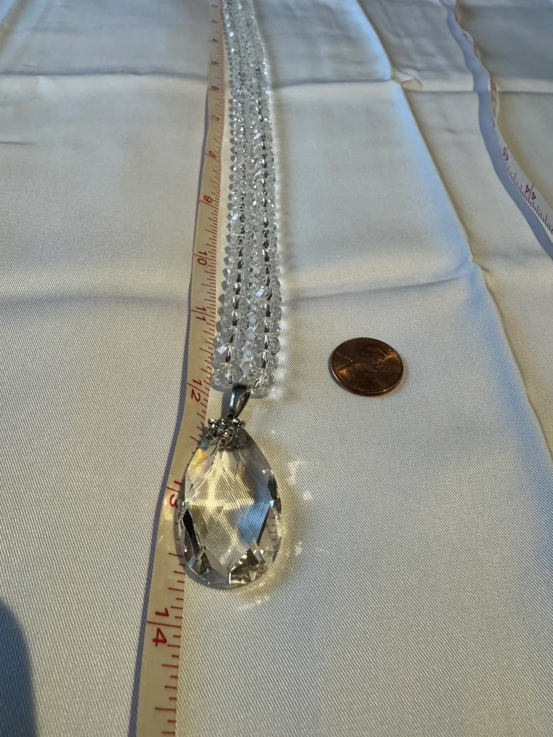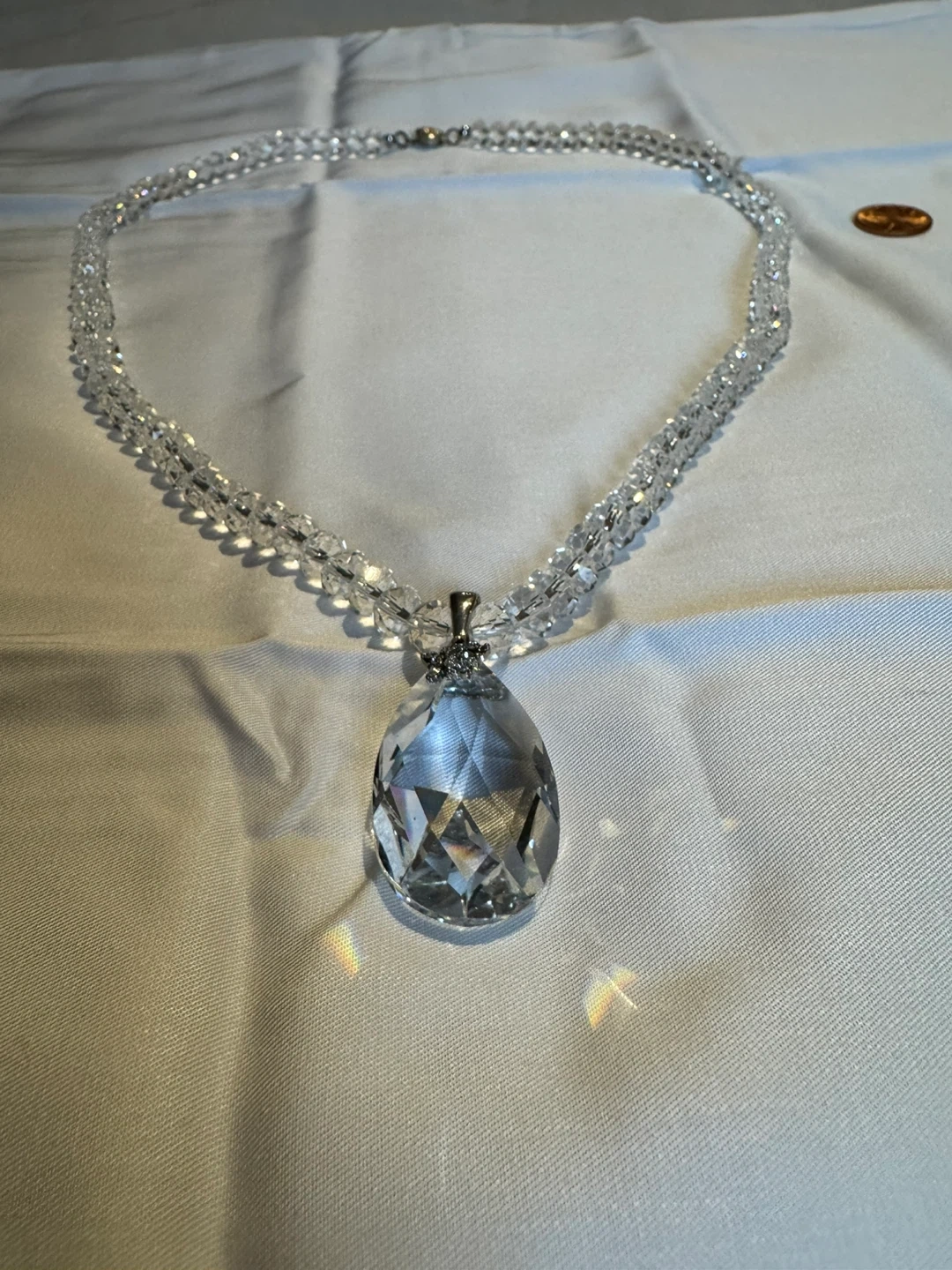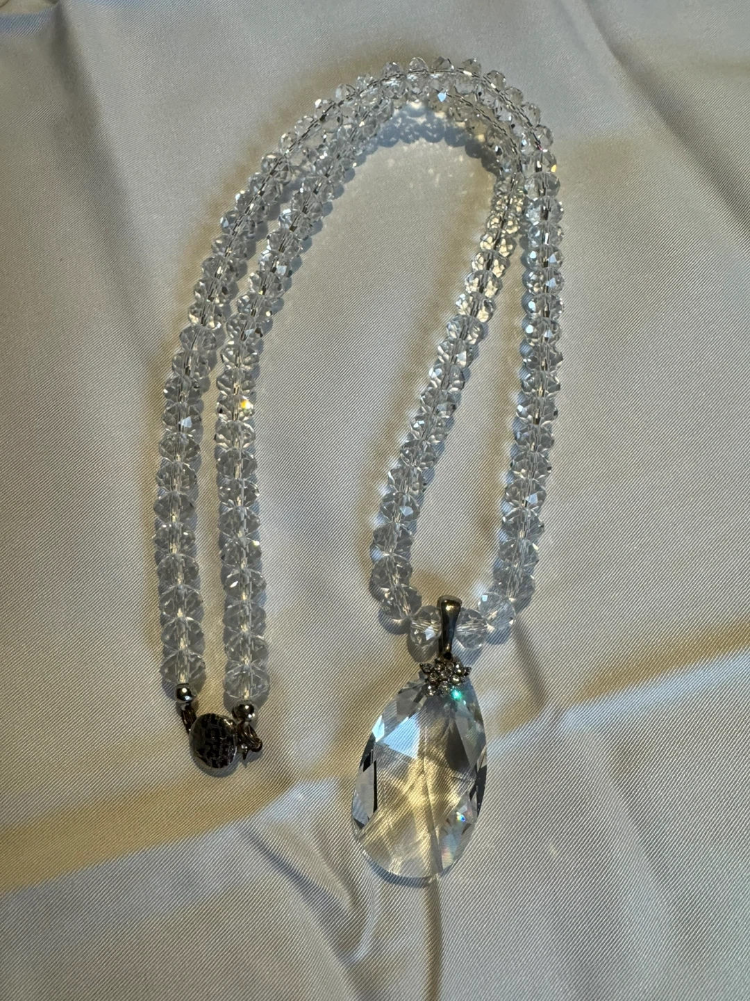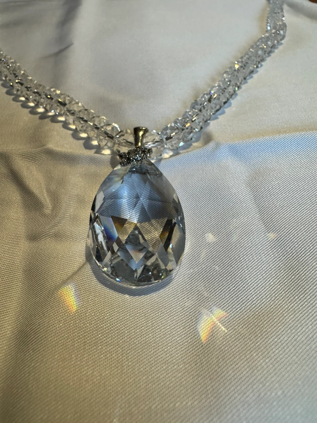 Vintage Handmade Clear Crystal Glass Faceted Beaded Statement Necklace Jewelry with Large Pendant