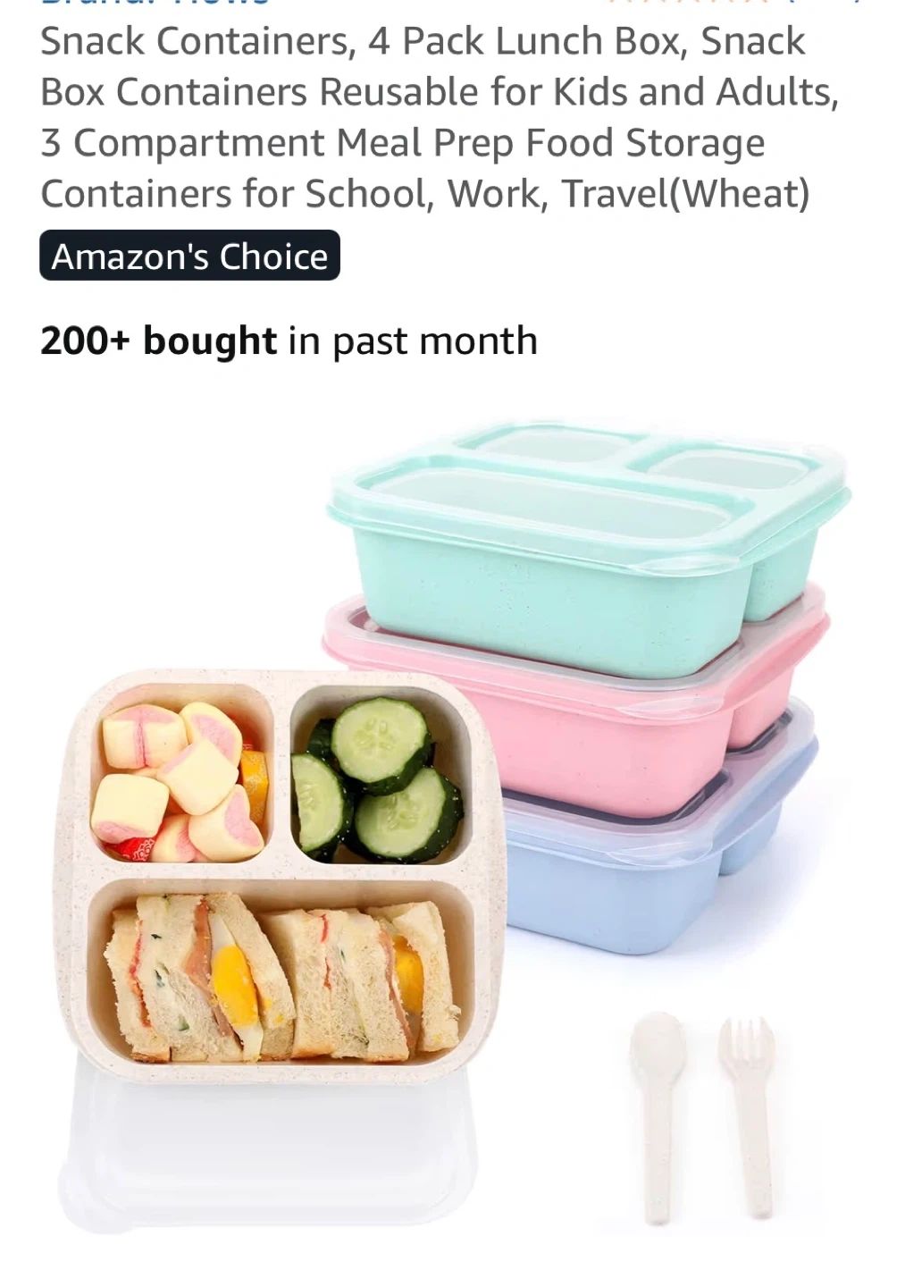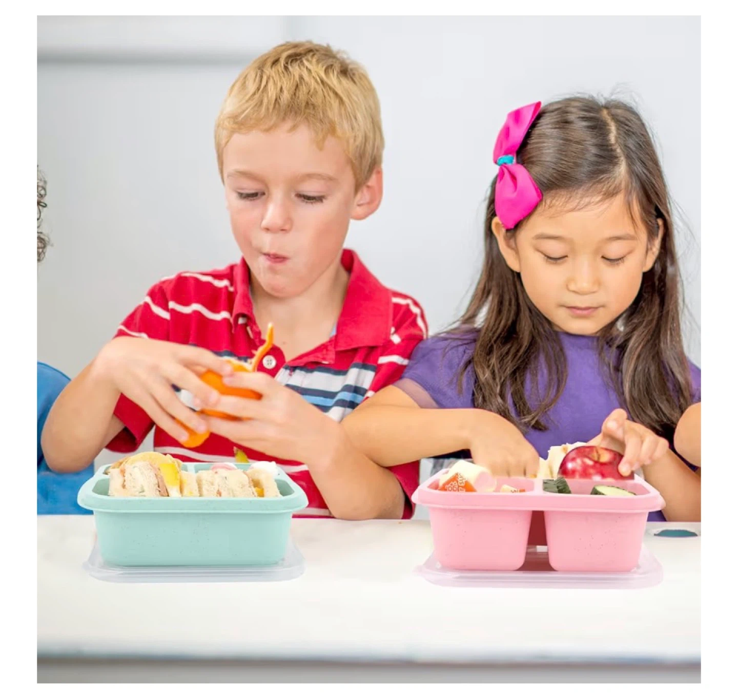 Convenient 3-compartment lunch boxes (2) for packing meals. They're microwave and dishwasher safe (up to 248°C without lid). Suitable for refrigerator storage. These boxes are approximately 16cm x 16cm x 5cm.